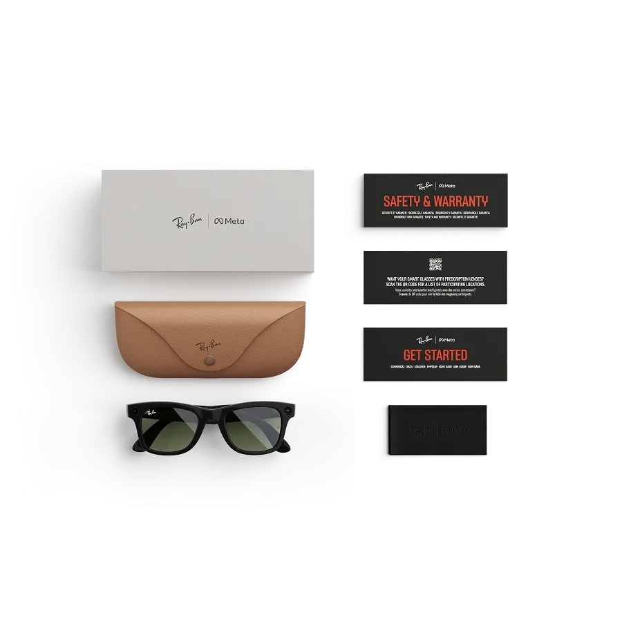 Brand new in the Box. Sealed not even opened. Ray-Ban Wayfarer (Gen 2) smart glasses in shiny black. Includes glasses, charging case, and cleaning cloth. These glasses offer a unique blend of style and technology!