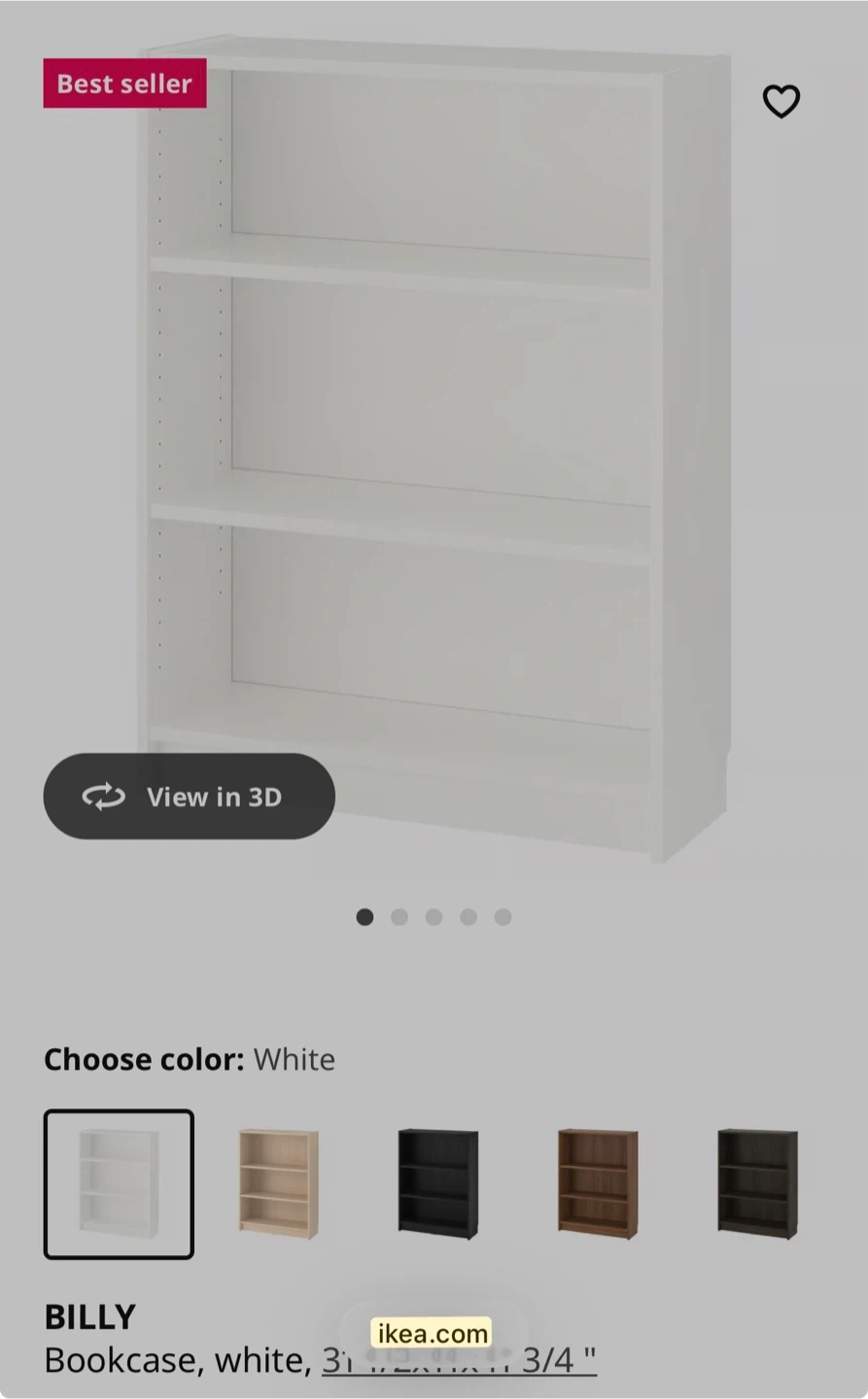 White BILLY bookcase. Dimensions are 31 1/2" wide, 11" deep, and 41 3/4" high. This unit offers adjustable shelves for versatile storage. It's a classic and practical storage solution!