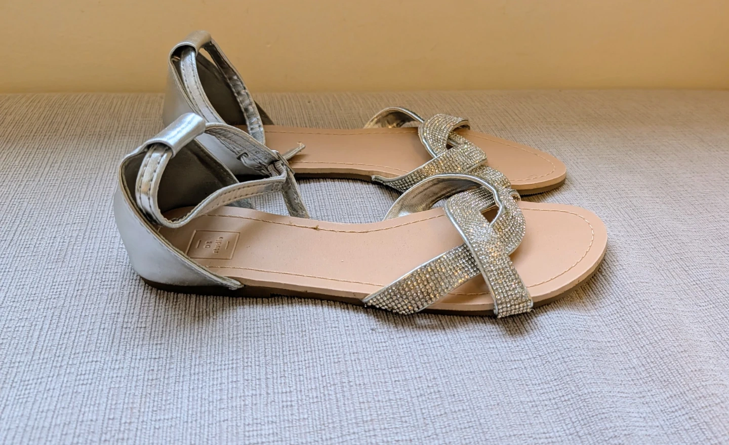Buy & SellBrand New Silver Embellished Flat Sandals - Women's Size 8Brand New Silver Embellished Flat Sandals - Women's Size 8$48DB Studio Zane flat sandals in silver. Features sparkly rhinestone embellishments on the straps and an ankle strap closure. ConditionNewWHERE TO MEETBamburgh CircleView MapSELLERverifiedNurissaSteeles1000+86 reviews0 chats·1 favorites·6 viewsSEND CHAT TO SELLERHi Nurissa! I’m interested in your listing.Hi Nurissa! I’m interested in your listing.Get the Karrot app to chatSign In to chat