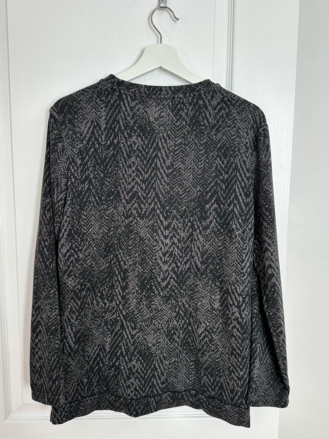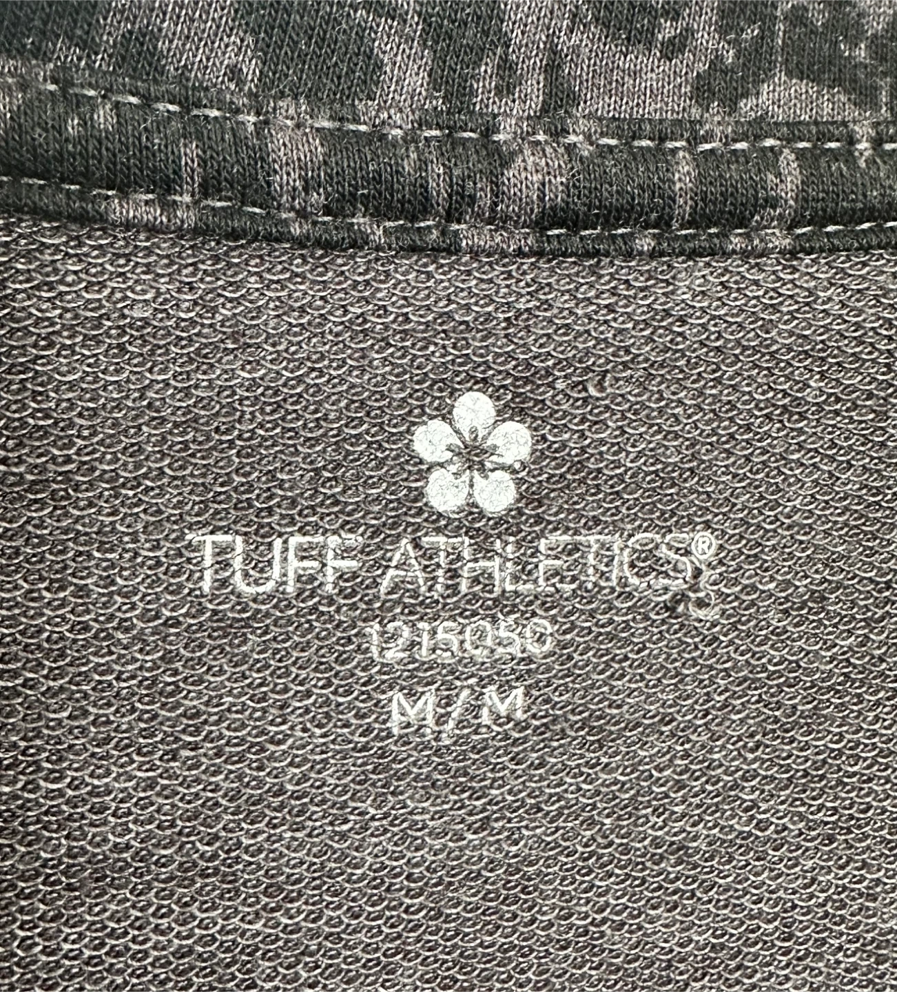 This gently used Tuff Athletics long sleeve shirt features a cool all-over animal pattern and a cool overlapping detail at the hem. It's a size M/M. Perfect for casual wear or light athletic activities!