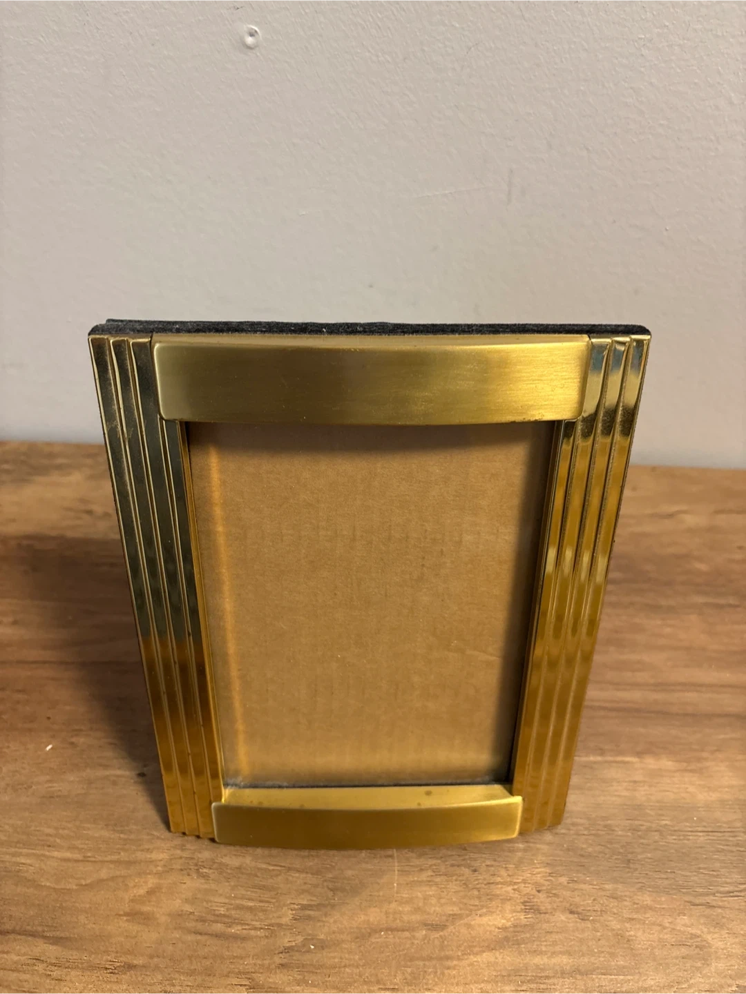 Selling a nice brass picture frame! It's in great shape and ready to display your favourite memories. The frame has a sleek design and a stand on the back. Perfect for any room!