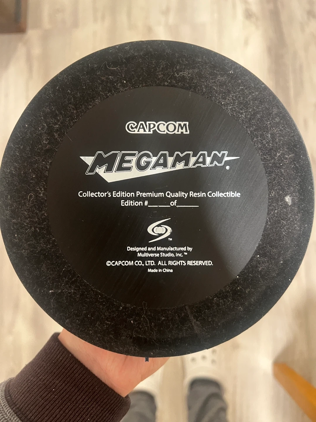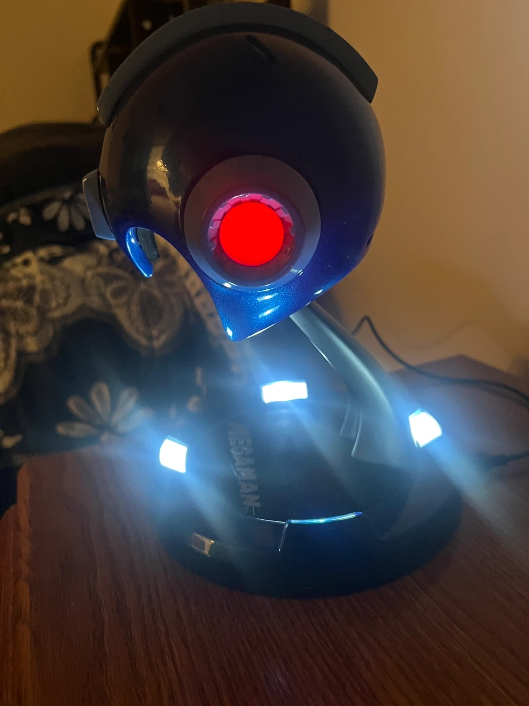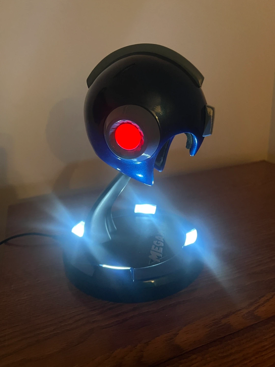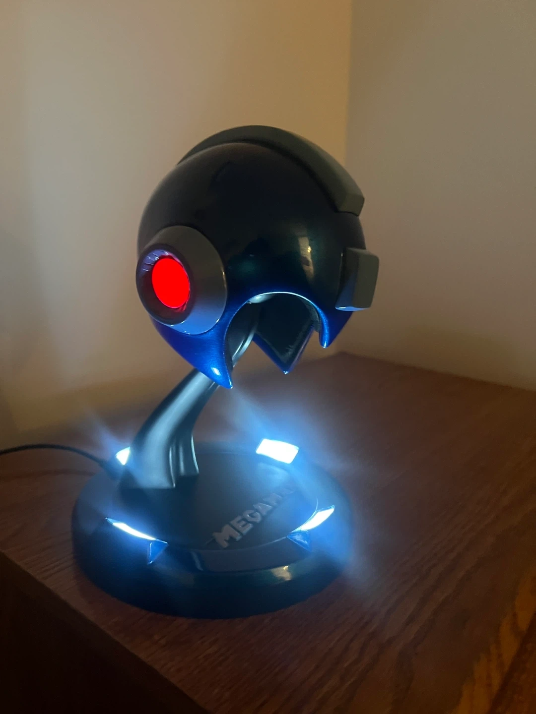 This is a Mega Man Collector's Edition Premium Quality Resin Collectible. It features a metallic blue helmet design with a red eye accent. The base has "Mega Man" printed on it and lights up with white LEDs. Designed and manufactured by Multiworld Studio, Inc. for Capcom. (10 inches, sadly no box so I discounted for that, I got it a long time ago. But I kept it in great condition)