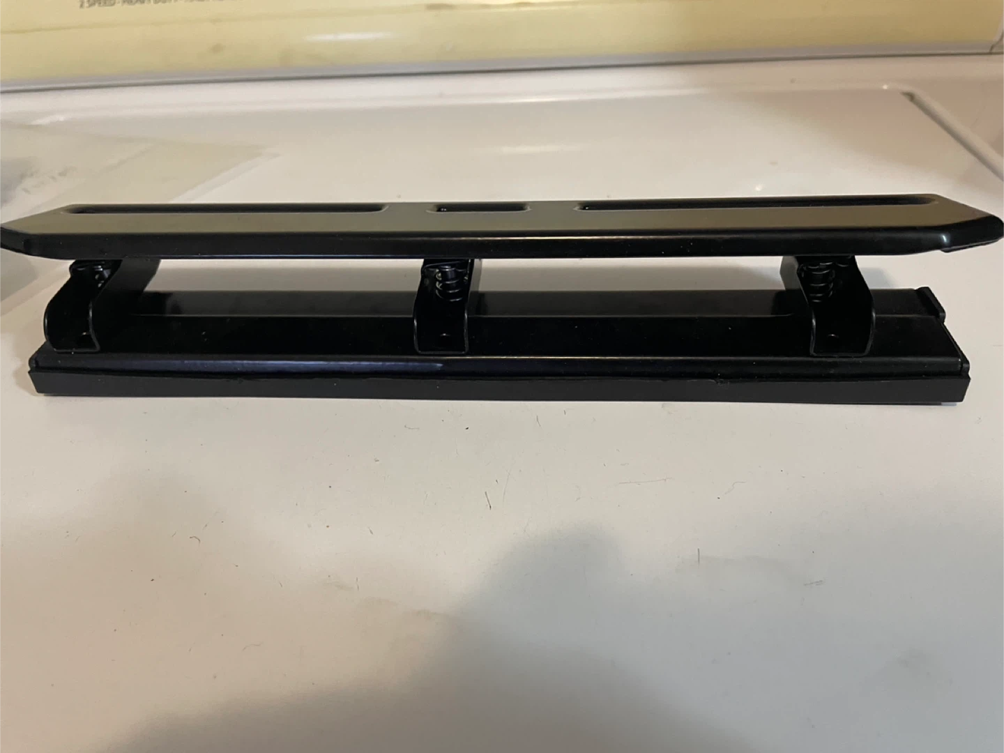 Selling a black three-hole punch! It's in great condition and ready for a new home. Perfect for keeping your documents organized