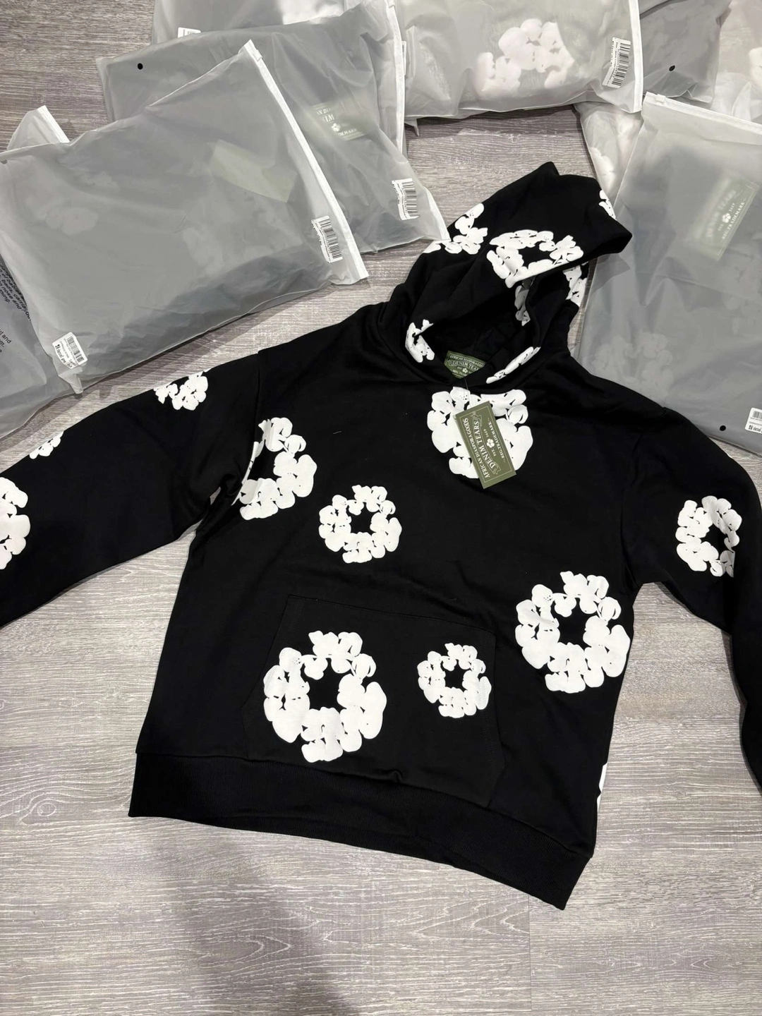 Cozy black hoodie with a fun floral design from Dream Team Flowers! It's in great condition and ready for a new home. Perfect for adding a touch of style to your casual wear
