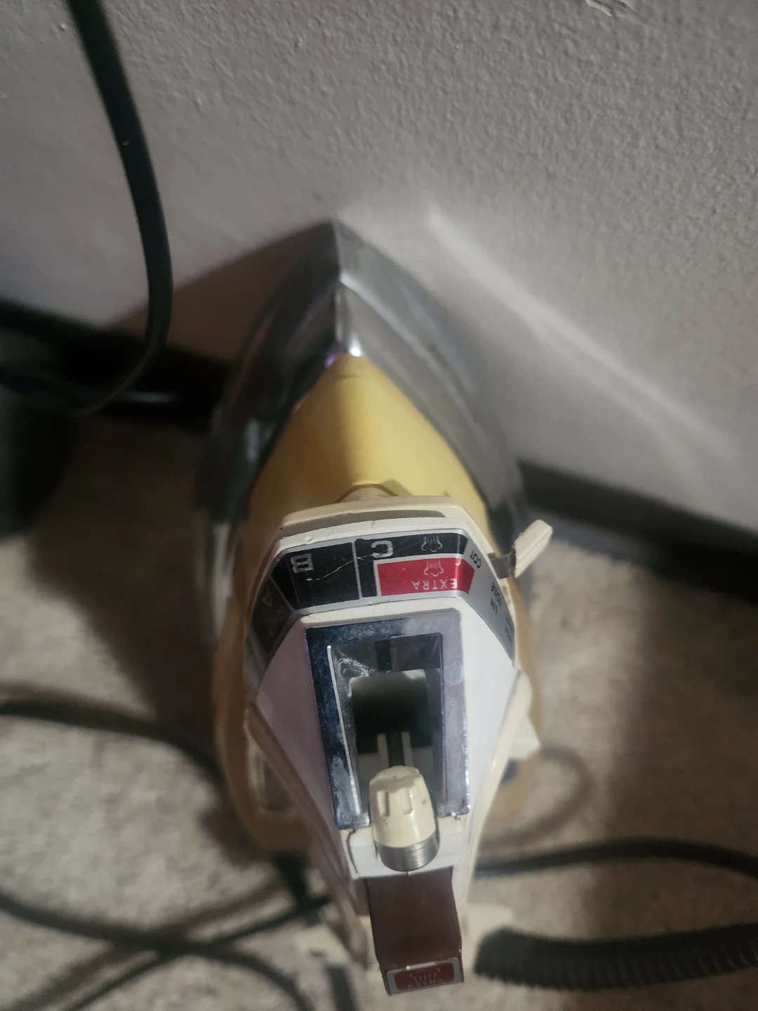 Selling a vintage Proctor-Silex self-cleaning super steam iron. It has settings for different types of fabrics like synthetics, rayons, and wool. A cool piece for anyone into vintage appliances!