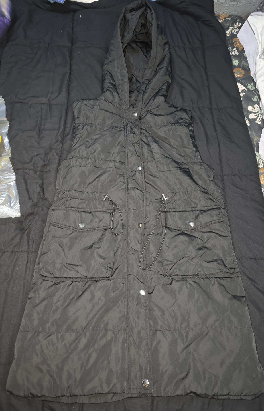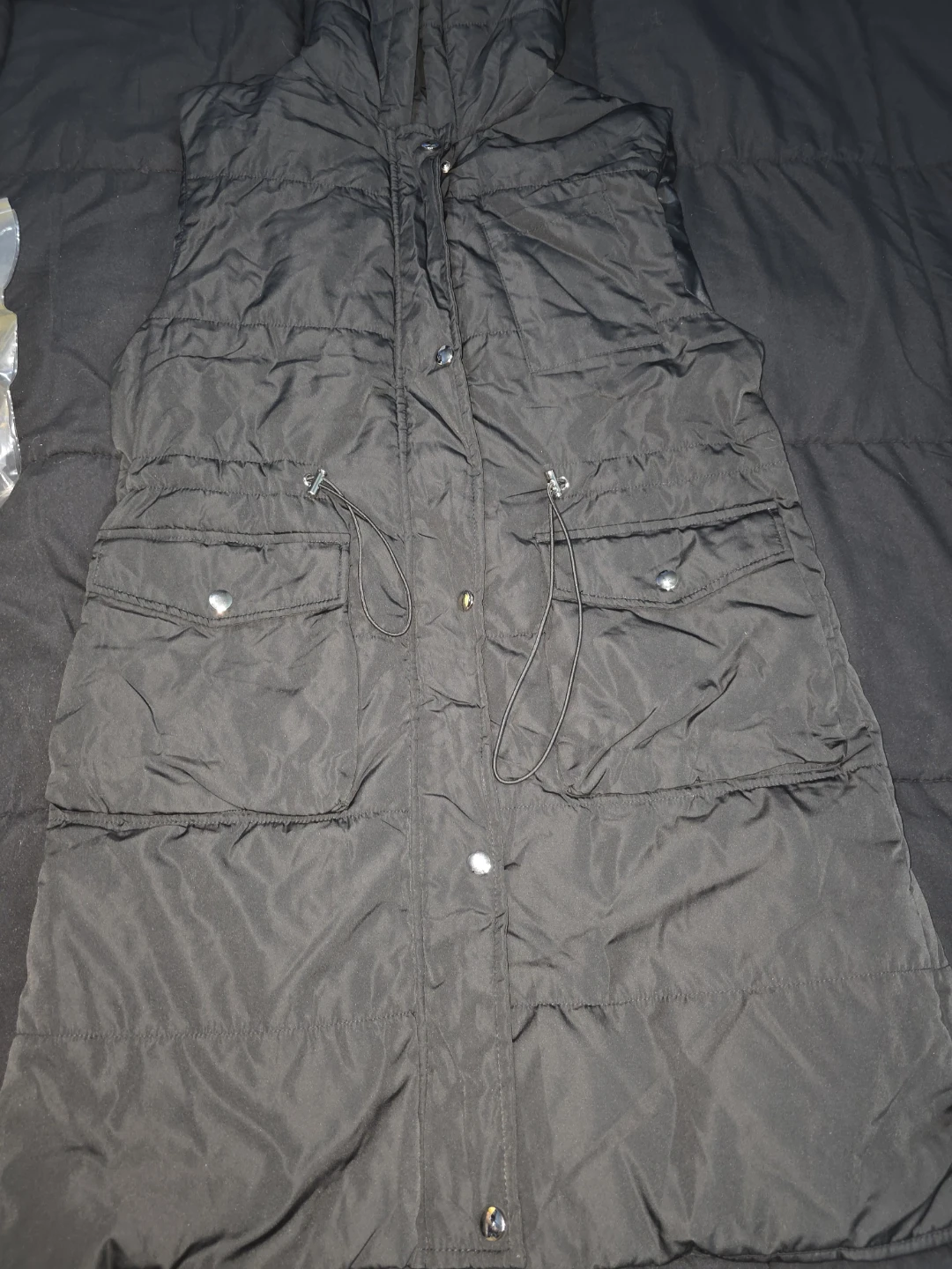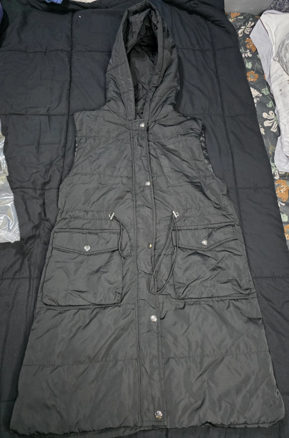 1 / 61 / 6Buy & SellLong Black Puffer Vest with Hood size smallLong Black Puffer Vest with Hood size small$25This is a black puffer vest with a hood. It has a button-up zipper and front drawstrings around the waist. It also has pockets! New ConditionNewSizesmallWHERE TO MEETCheck LocationView MapSELLERverifieddelgadoKensington973 reviews0 chats·0 favorites·16 viewsSEND CHAT TO SELLERHi delgado! I’m interested in your listing.Hi delgado! I’m interested in your listing.Get the Karrot app to chatSign In to chat