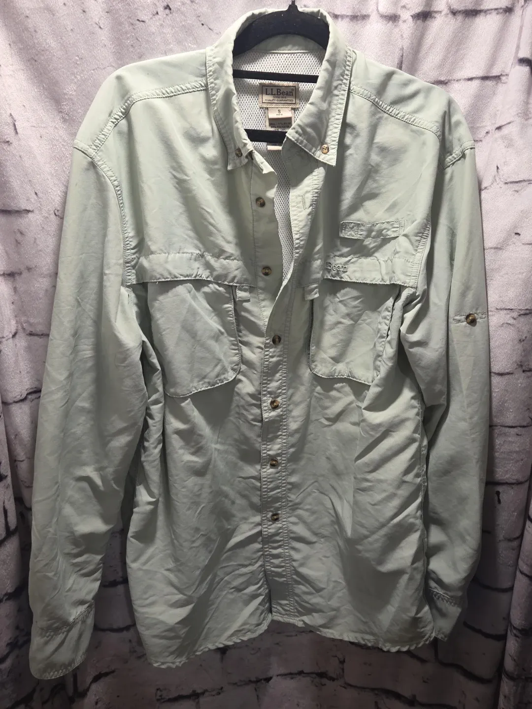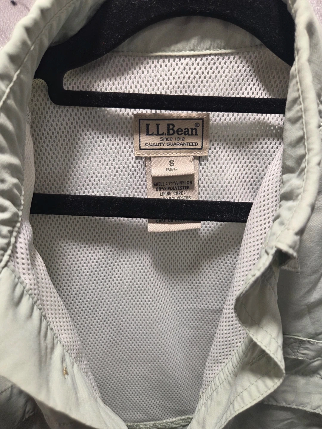 L.L.Bean men's button-up shirt. Size S Reg. Shell: 71% Nylon, 29% Polyester. Lining: 100% Polyester. This shirt is great for fishing trips or outdoor adventures!