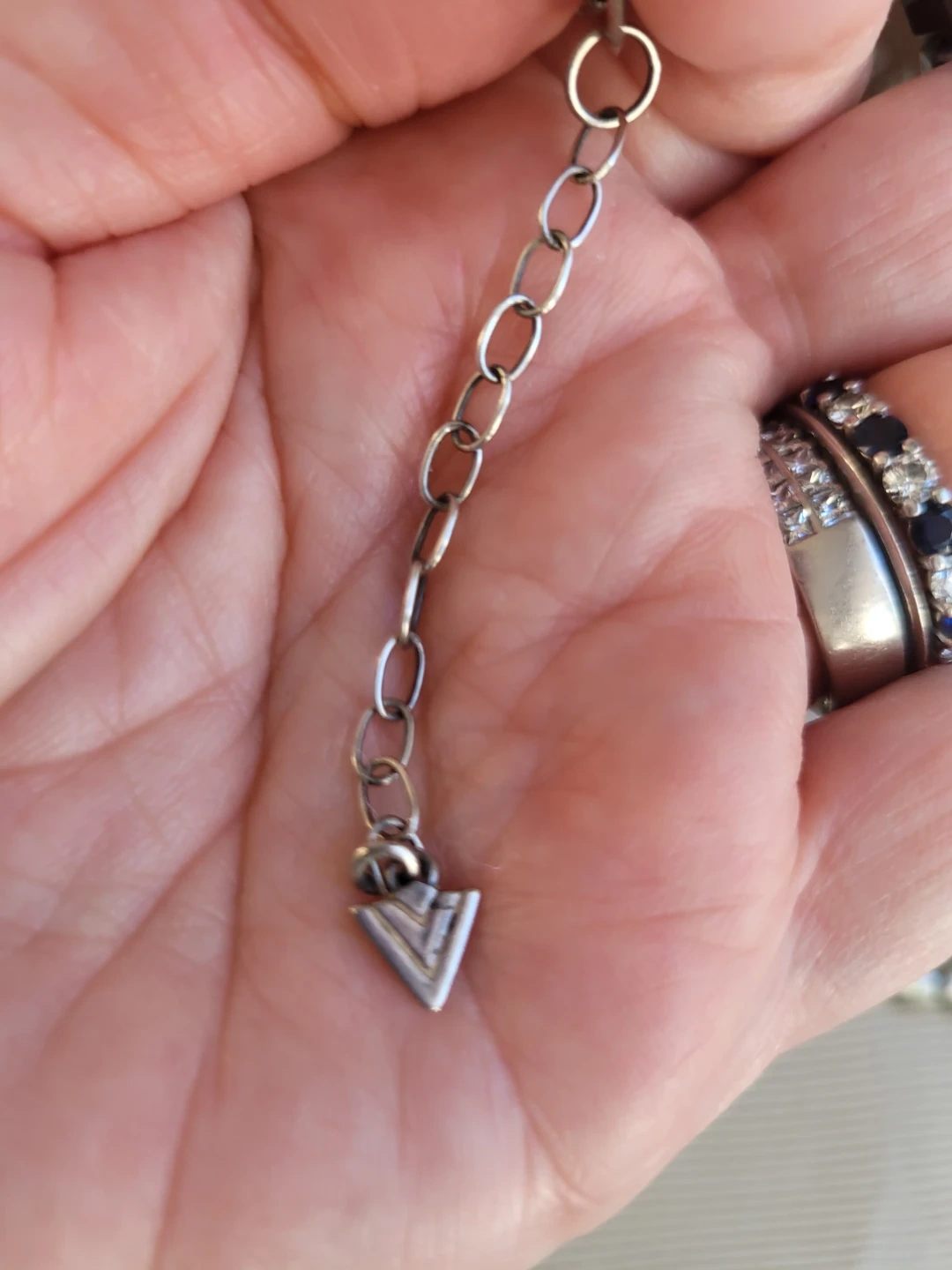 18" a lobster clasp with a 2" extender chain and signature triangle accent.