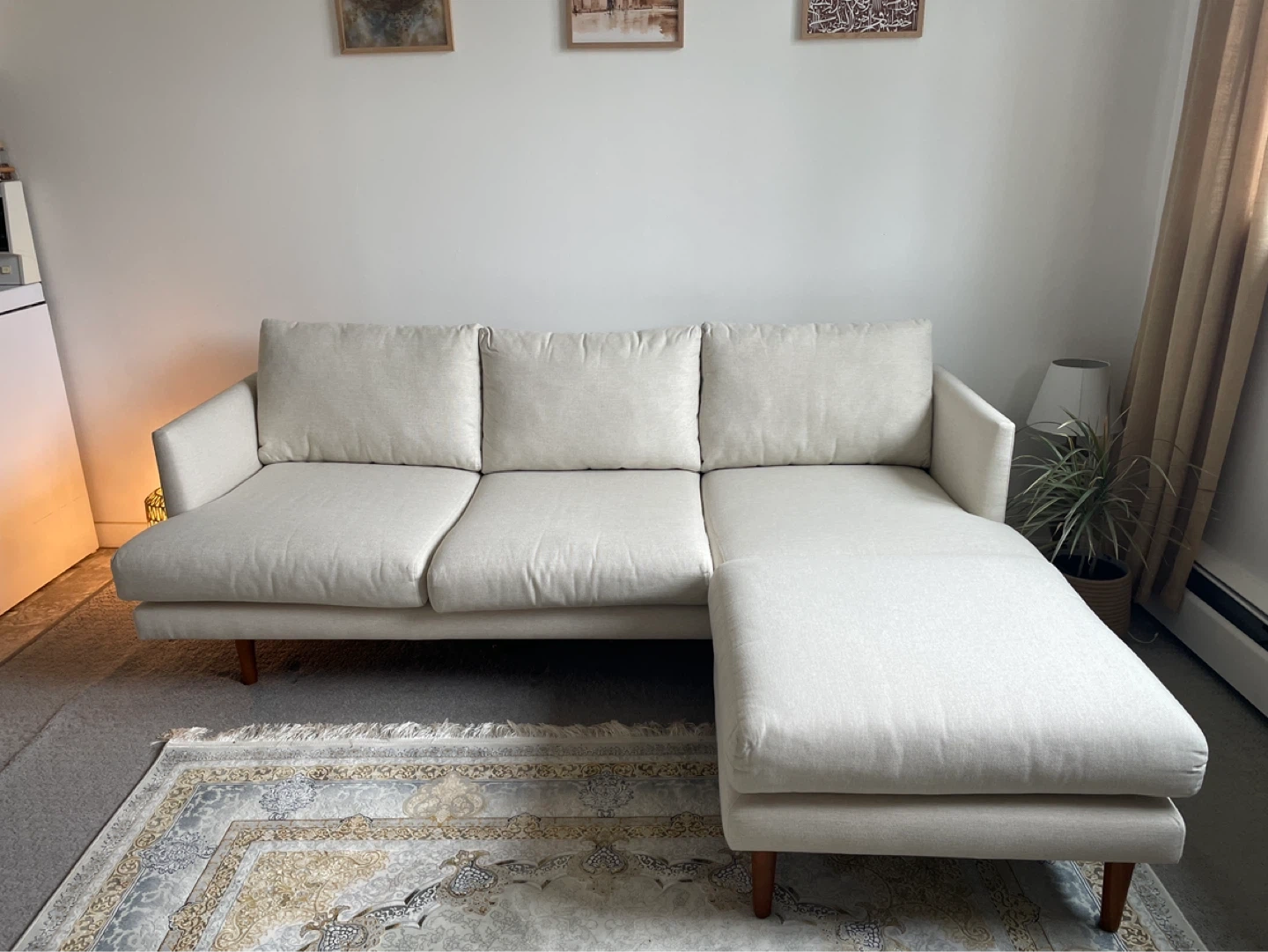 Buy & SellCream Sectional Sofa with Ottoman from ArticleCream Sectional Sofa with Ottoman from Article$700Cream-coloured sectional sofa with a matching ottoman. It's upholstered in a textured fabric. This versatile piece offers ample seating space.ConditionLike newWHERE TO MEET1175 Haro streetView MapSELLERverifiedSamW End701 review0 chats·0 favorites·43 viewsSEND CHAT TO SELLERHi Sam! I’m interested in your listing.Hi Sam! I’m interested in your listing.Get the Karrot app to chatSign In to chat