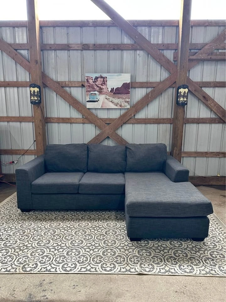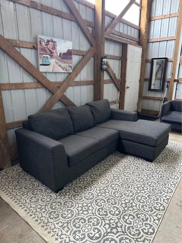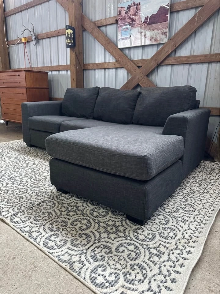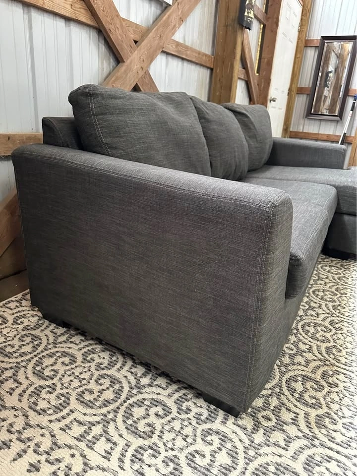 Professionally shampooed and steam cleaned. Comes apart in 2 pieces for easy storage and tight rooms. Removable covers for easy cleaning. From a pet-friendly home. Modern salt and pepper grey high-grade fabric. Comfortable springs in great shape. Ready for a new home. π‘ Dimensions available in photos.