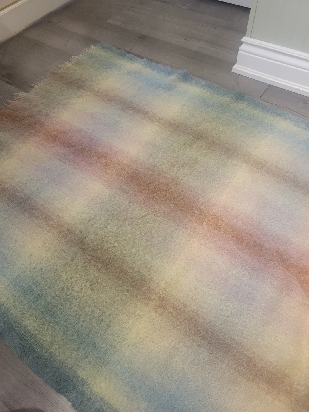 Vintage Pastel Mohair and Wool Throw Blanket. Picnic Blanket.