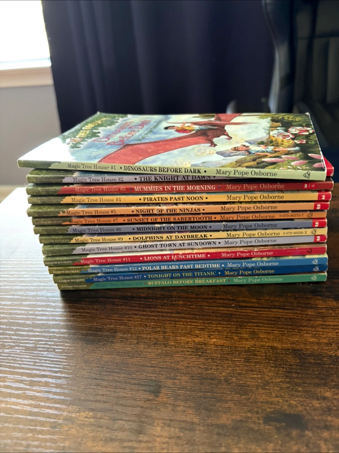 Buy & SellMagic Tree House Books #1-12Magic Tree House Books #1-12$15Collection of twelve Magic Tree House books by Mary Pope Osborne. Books #1-12 included. Great for young readers. Only missing #6WHERE TO MEETLorne ParkView MapSELLERDeniseLorne Park503 reviews0 chats·0 favorites·11 viewsSEND CHAT TO SELLERHi Denise! I’m interested in your listing.Hi Denise! I’m interested in your listing.Get the Karrot app to chatSign In to chat