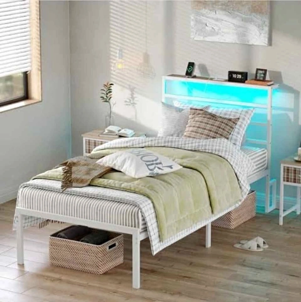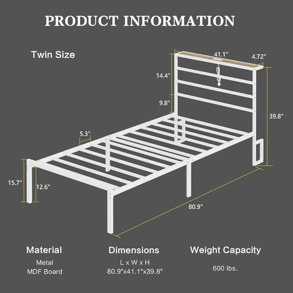 Twin Bed Frame with Headboard & Mattress