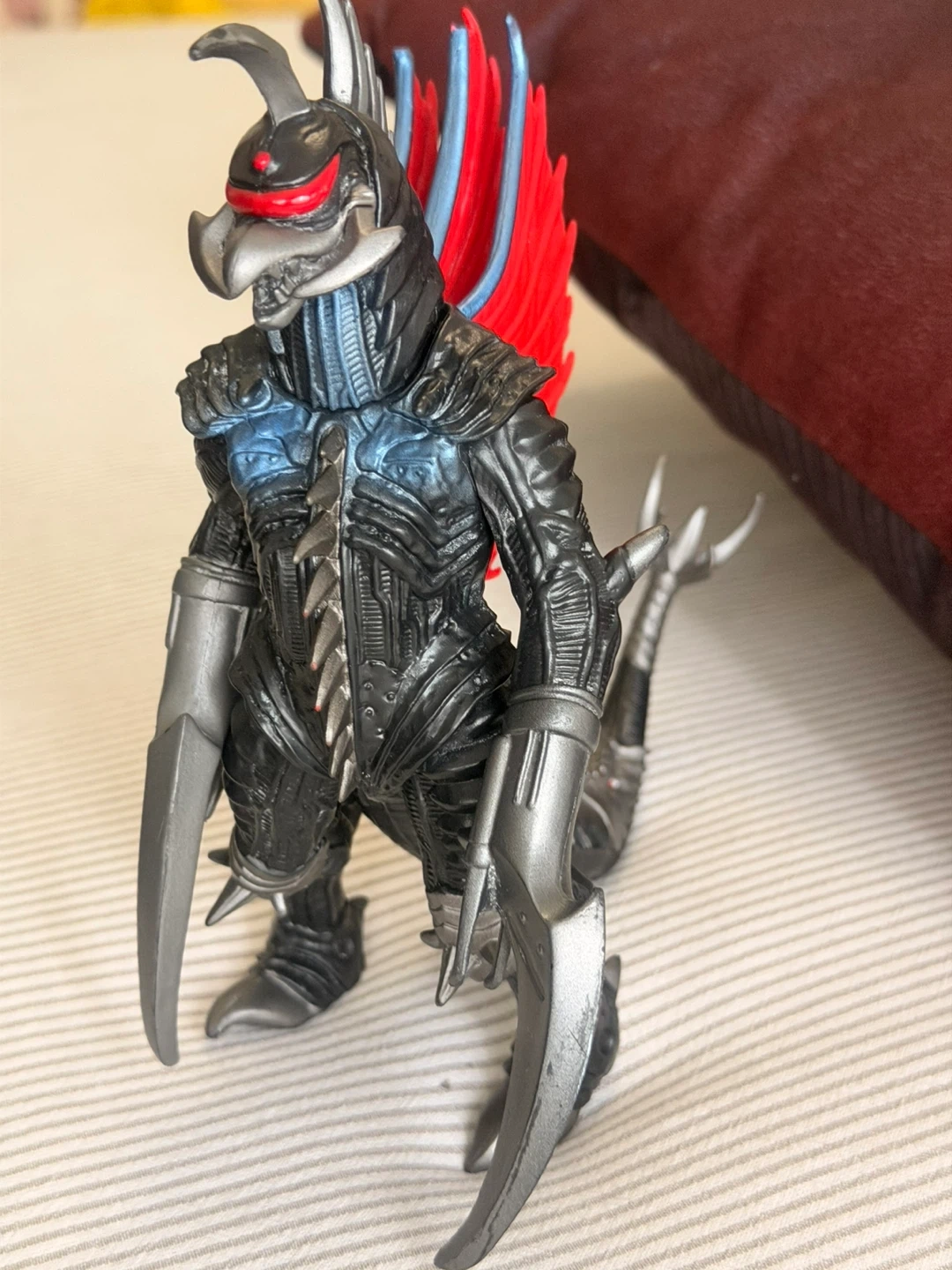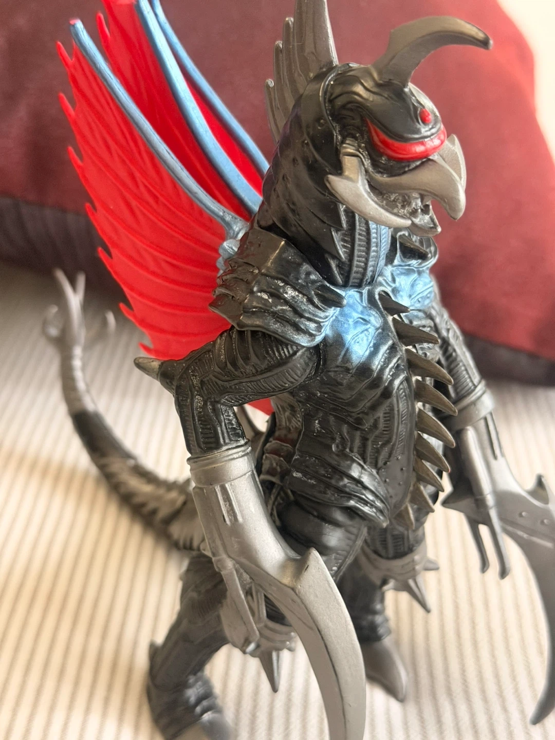 This is a highly detailed MonsterArts Gigan action figure. It measures approximately 7 inches tall. It's made of durable plastic and features articulated limbs for posing!