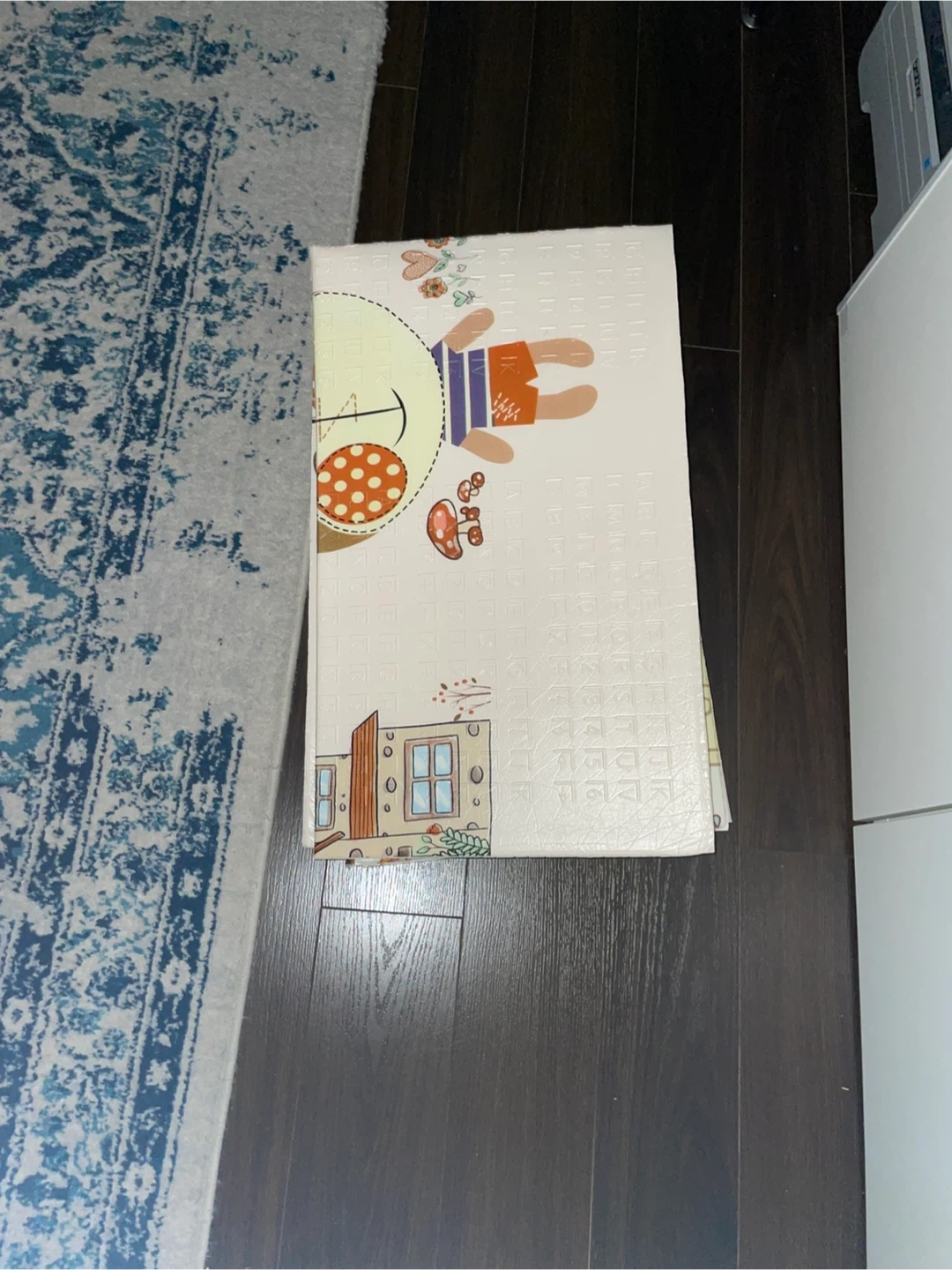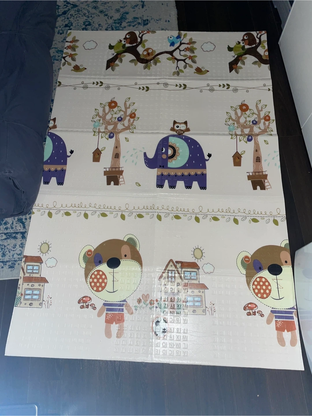 A foldable foam play mat! We used it when hosting play dates at restaurants and party rooms. Super useful for littles not yet walking. Easy to clean and fold to store. Cleaned and ready for a new home.