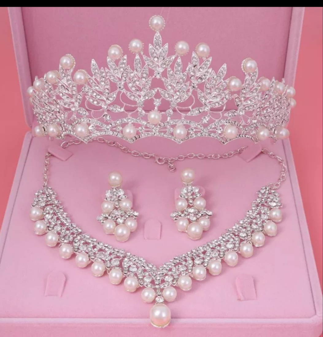 Set consists of: Earrings, necklace & tiara