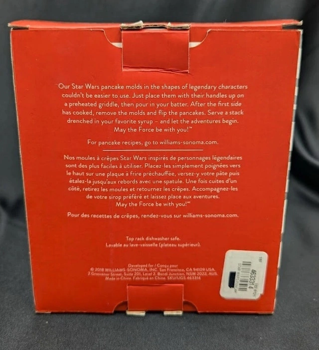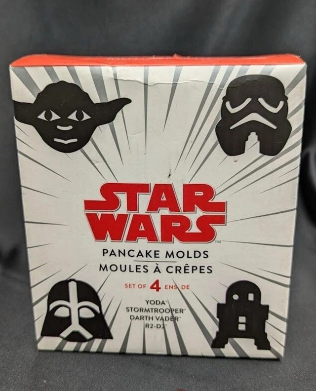 Create some delicious and fun Star Wars-themed pancakes with this set of Williams Sonoma pancake molds! This set includes four iconic character shapes: Yoda, a Stormtrooper, Darth Vader, and R2-D2, perfect for adding a touch of the Force to your breakfast. This item appears to be in like-new condition and includes the box. Features: * Includes molds of Yoda, Stormtrooper, Darth Vader, and R2-D2 * Made of silicone for easy release and cleaning * Officially licensed Star Wars product. I'm pricing this set at $25. If the ad is up, then yes, it's still available! May the Force (and the pancakes) be with you!