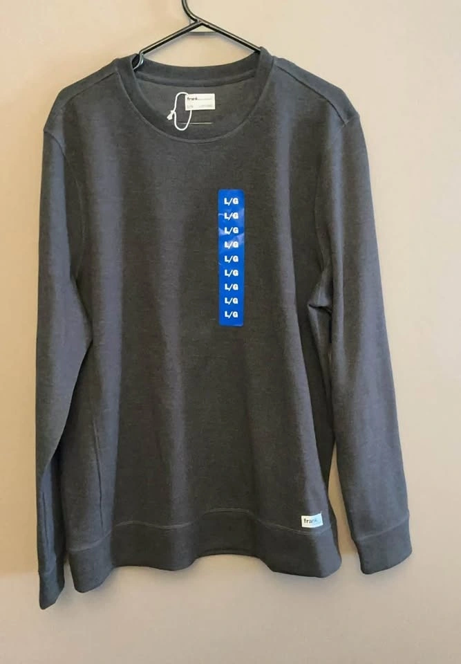 New with size sticker. Available in medium blue, and large/XL grey. $15 each. From a smoke-free, pet-friendly home.