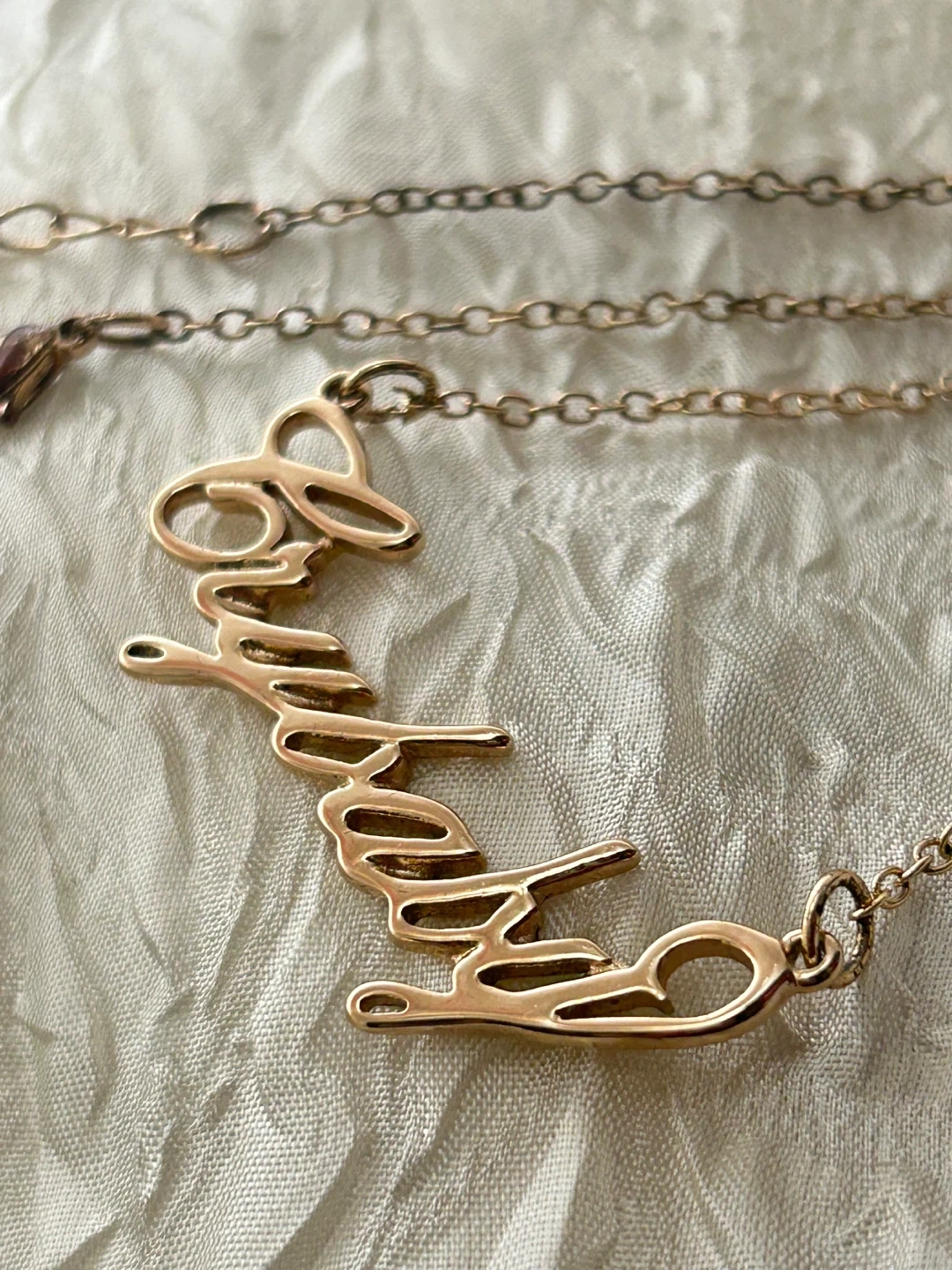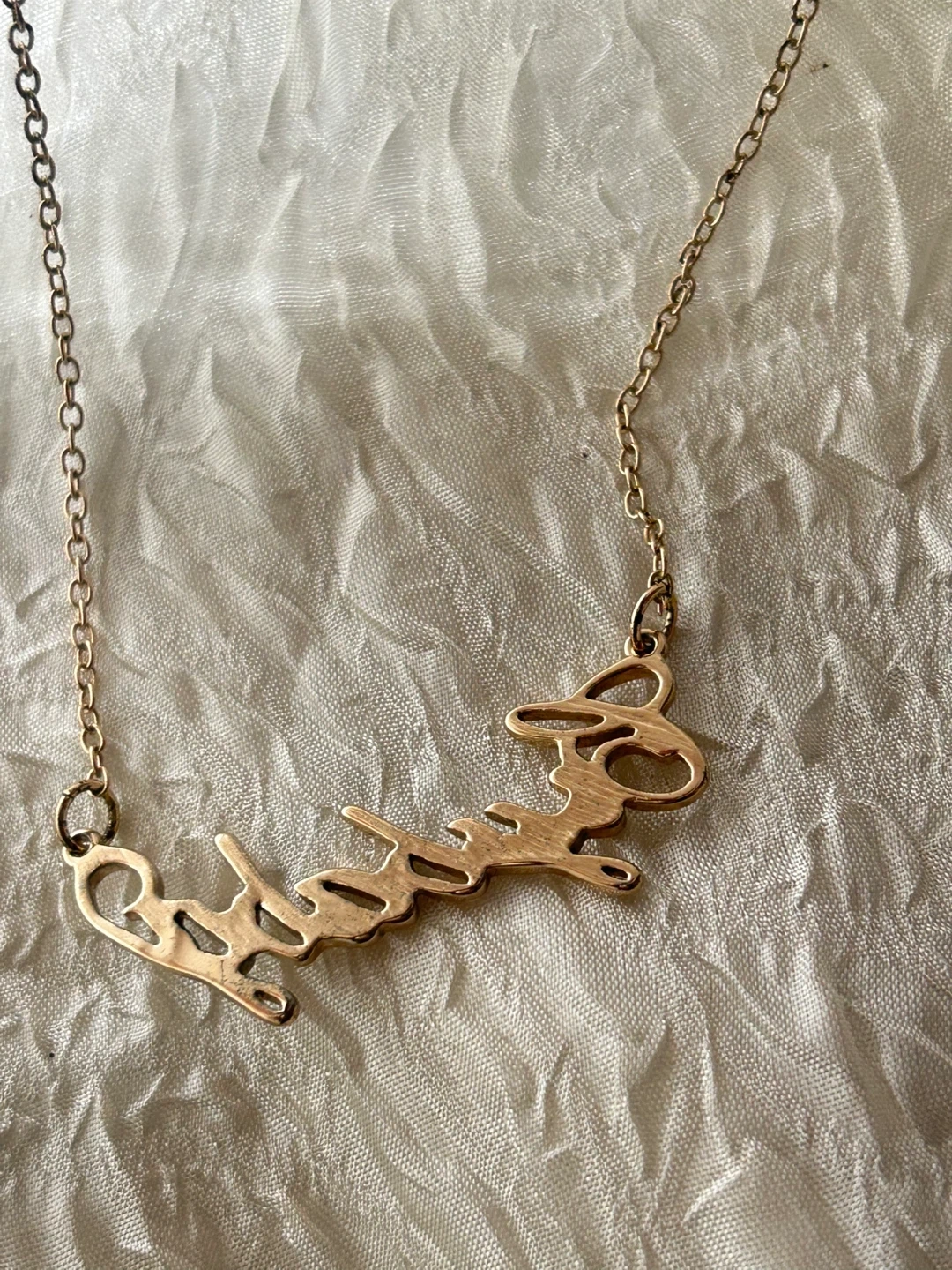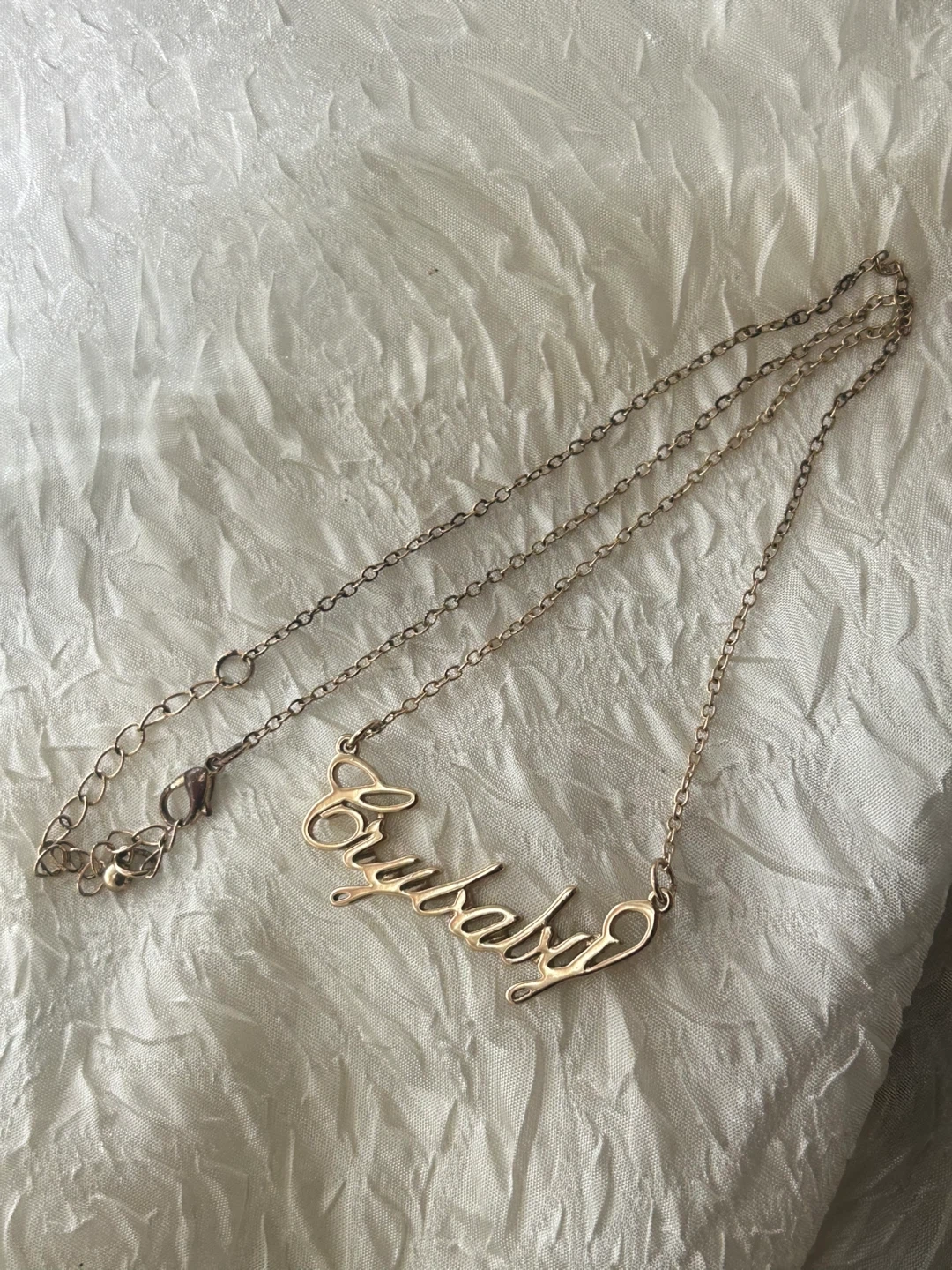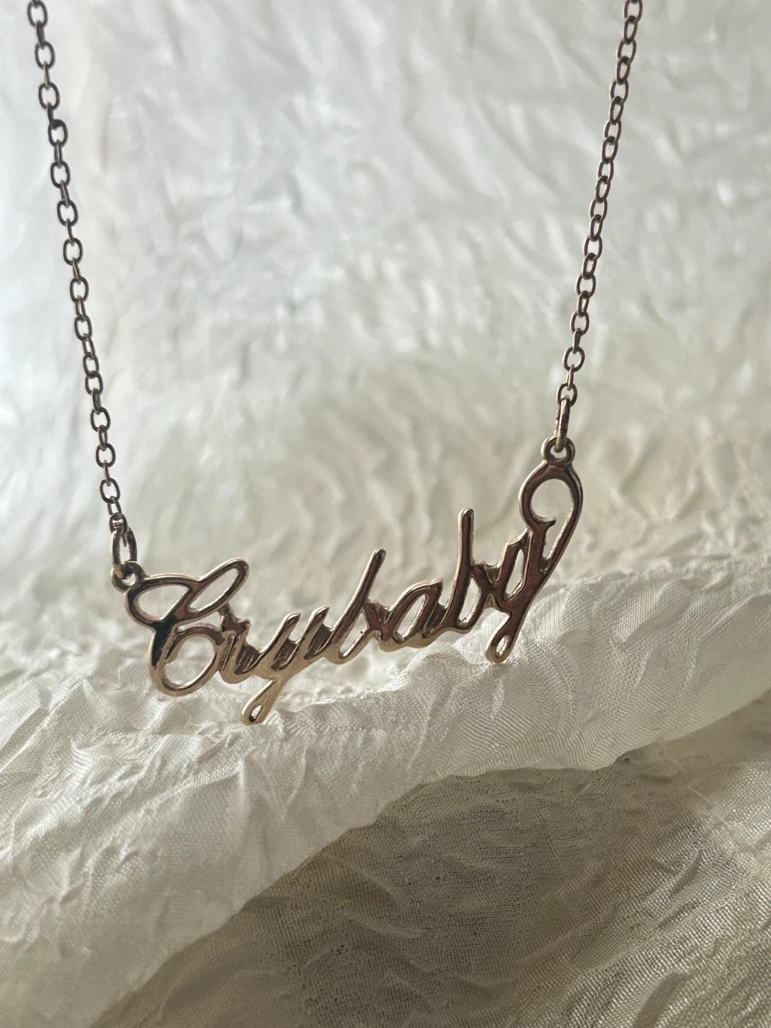 Buy & SellMelanie Martinez gold tone "Crybaby" script necklaceMelanie Martinez gold tone "Crybaby" script necklace$5This gold tone necklace features a script pendant spelling out "Crybaby". It's adjustable with a clasp closure.ConditionLike newBrandMelanie MartinezWHERE TO MEETMarkham and Brimorton intersectionView MapSELLERverifiedMariaWoburn29525 reviews0 chats·0 favorites·15 viewsSEND CHAT TO SELLERHi Maria! I’m interested in your listing.Hi Maria! I’m interested in your listing.Get the Karrot app to chatSign In to chat