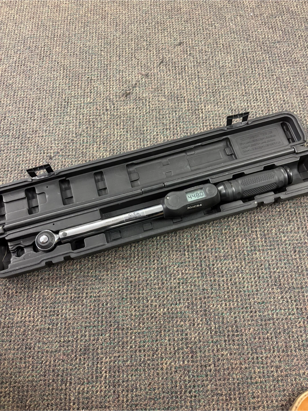 This is a PRO-POINT 1/2 inch drive digital torque wrench. It includes a protective carrying case. The display shows 44.80.