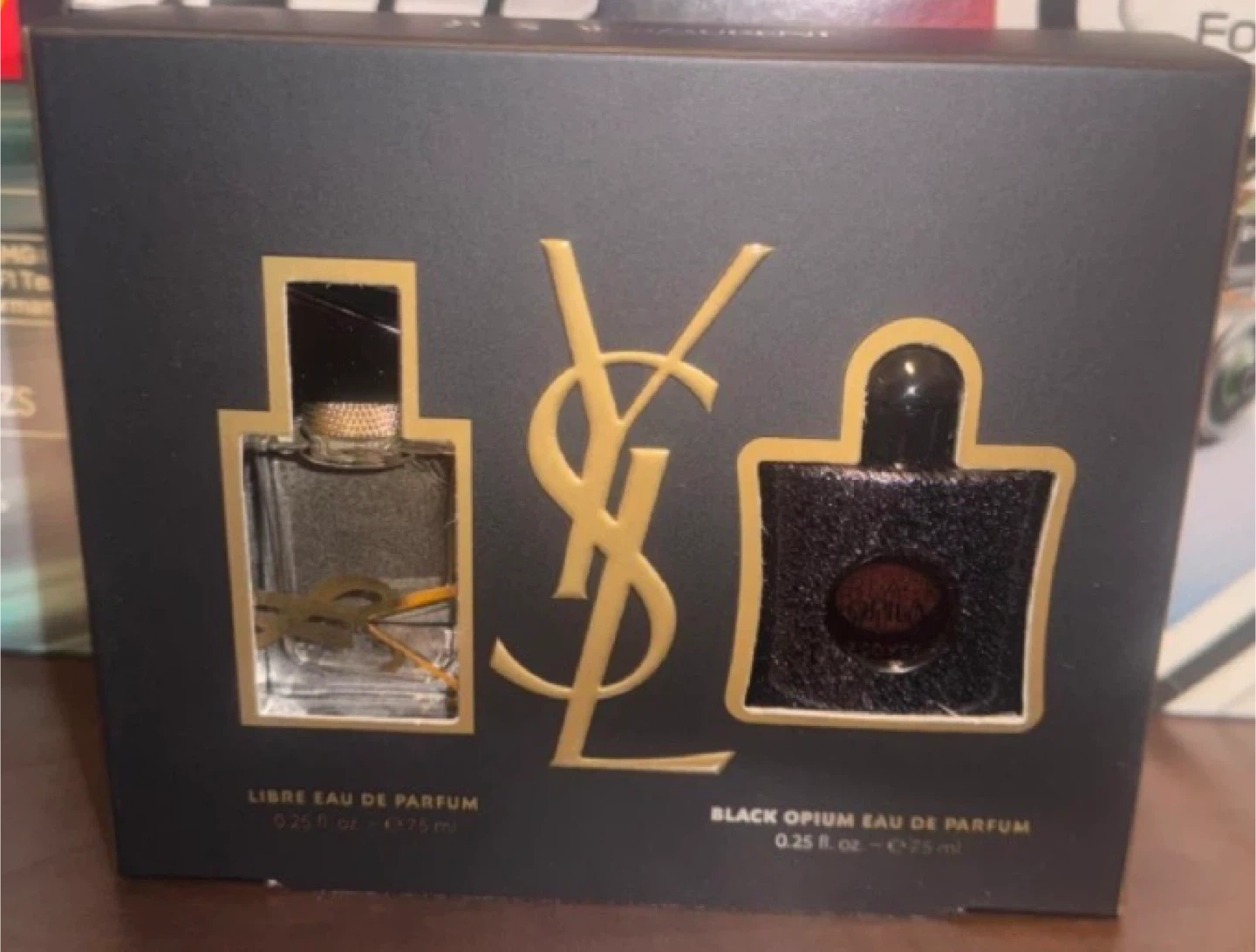 Set includes YSL Libre Eau de Parfum and Black Opium Eau de Parfum. Each fragrance is 0.25 fl oz (75 ml).
