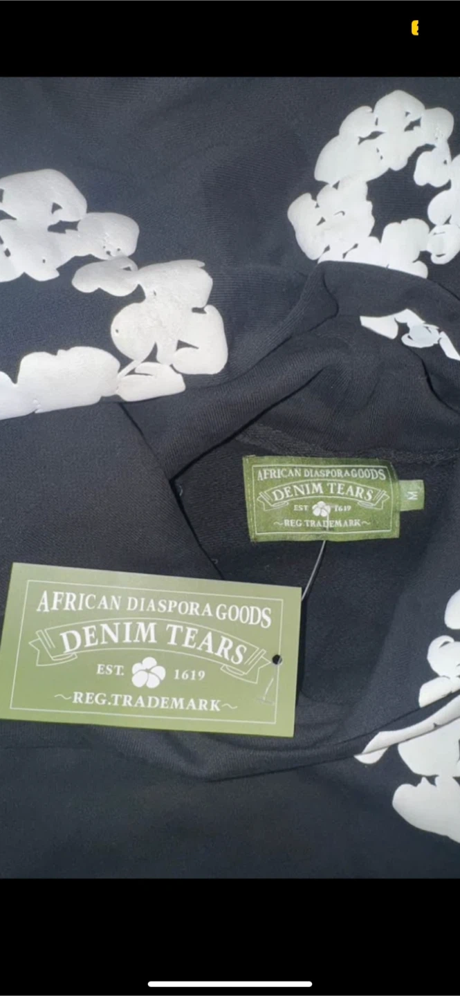 Selling a Denim Tears hoodie from the African Diaspora Goods collection! It's a size medium and features a unique floral design on a black background. The material is soft and comfortable, perfect for everyday wear. Don't miss out on this stylish piece!