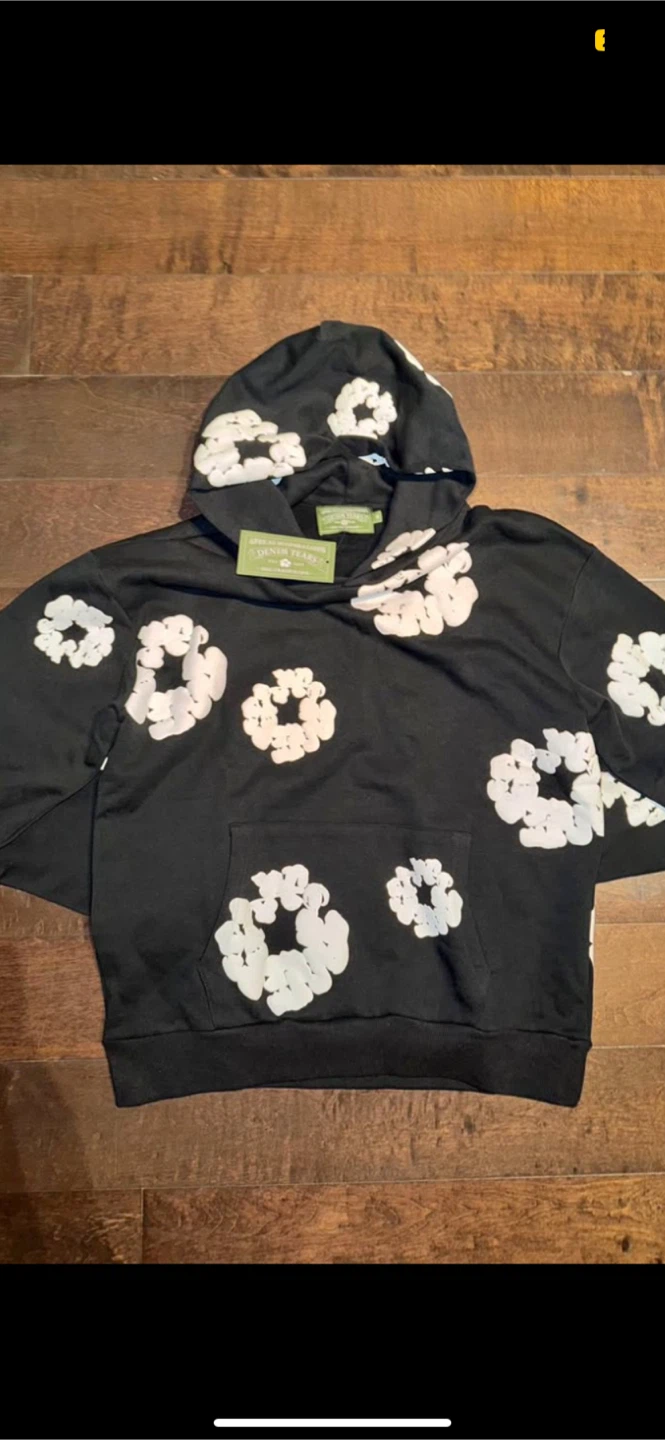 Selling a Denim Tears hoodie from the African Diaspora Goods collection! It's a size medium and features a unique floral design on a black background. The material is soft and comfortable, perfect for everyday wear. Don't miss out on this stylish piece!