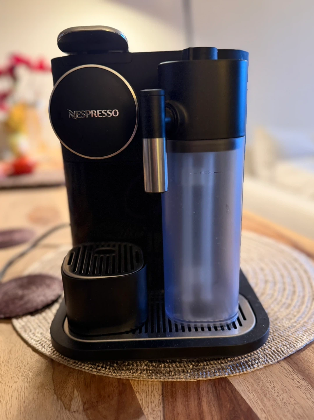 Nespresso Lattissima coffee machine with built-in milk frother.