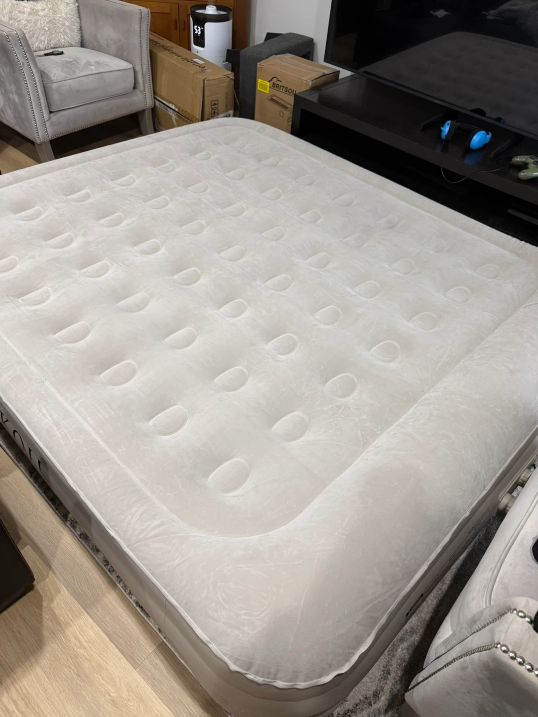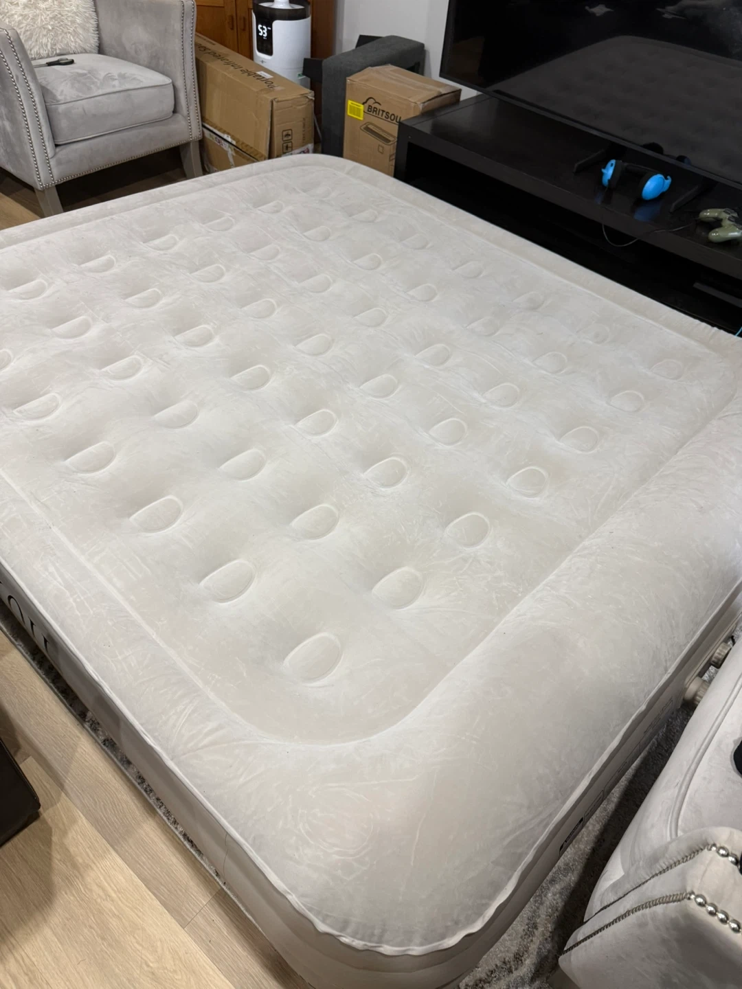 King Koil Plush Pillow Top King Air Mattress with Built-in High-Speed Pump. Great for home or camping! Only been aired up once in photos to take pictures brand new never used‼️