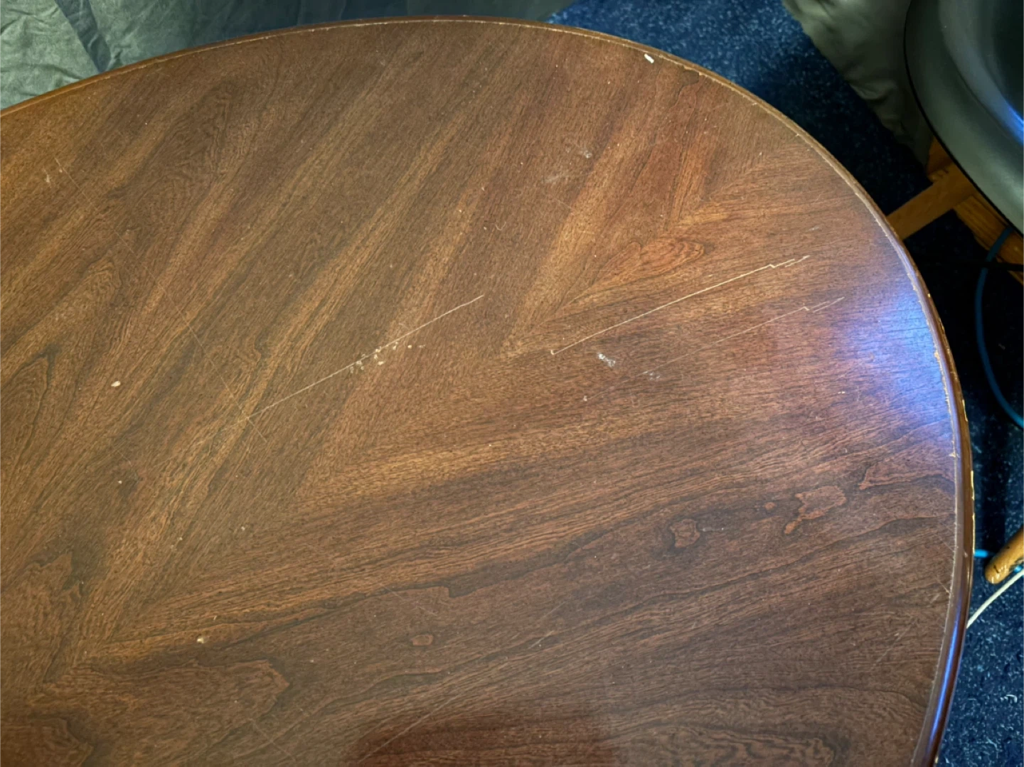 Selling a wooden coffee table. It has some scratches and signs of wear, as shown in the photos.