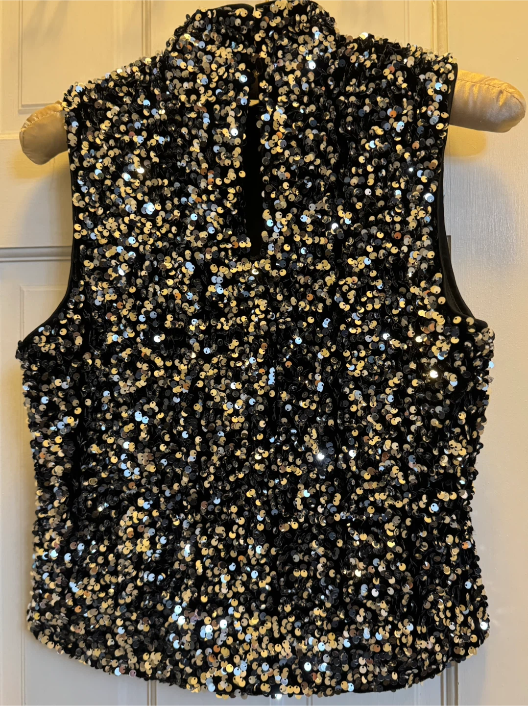 Here's a fun sequin top that's perfect for a night out! The sequins are black and silver, giving it a sparkly look. It's in great condition. Worn once. Pet free, smoke free home.