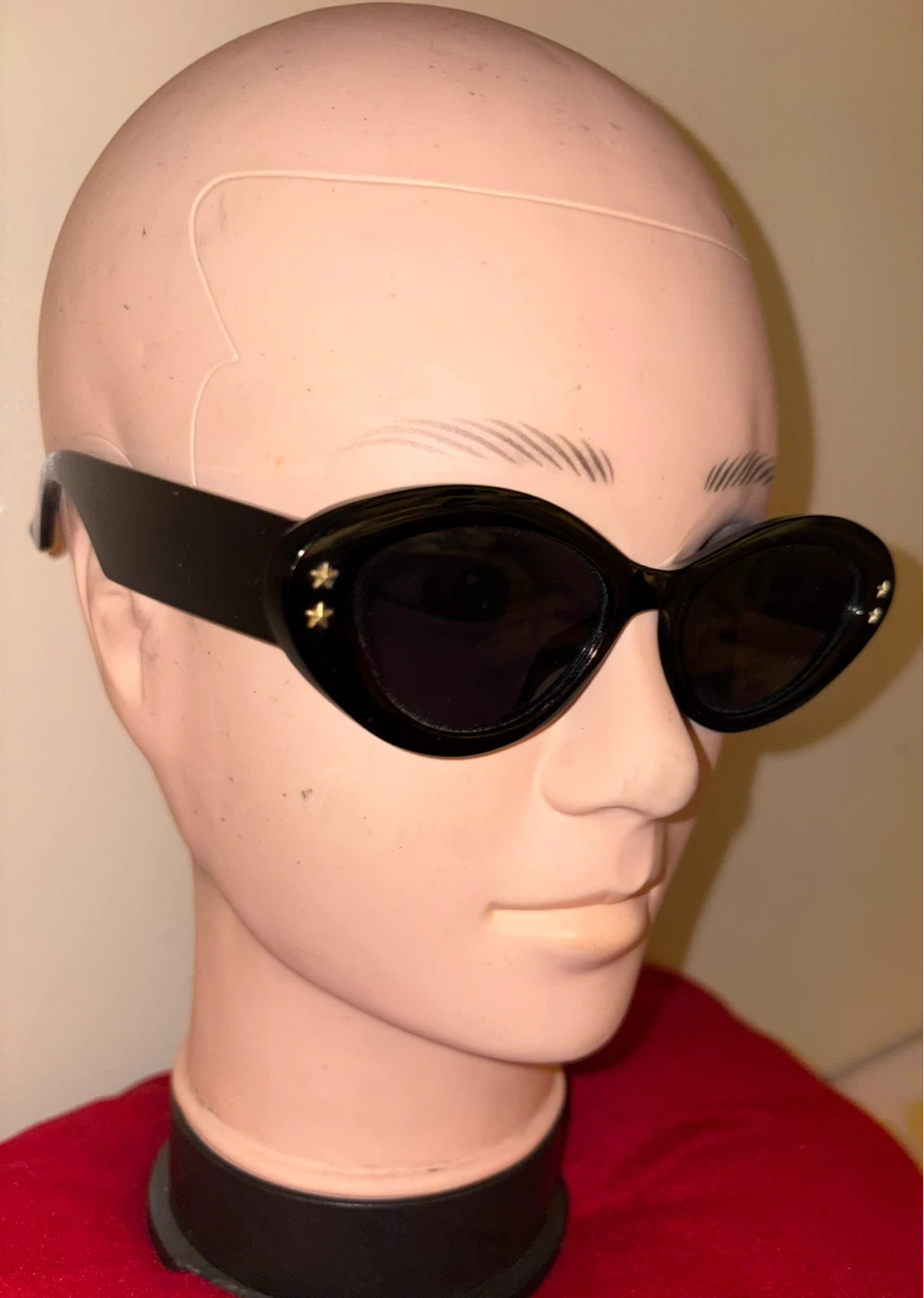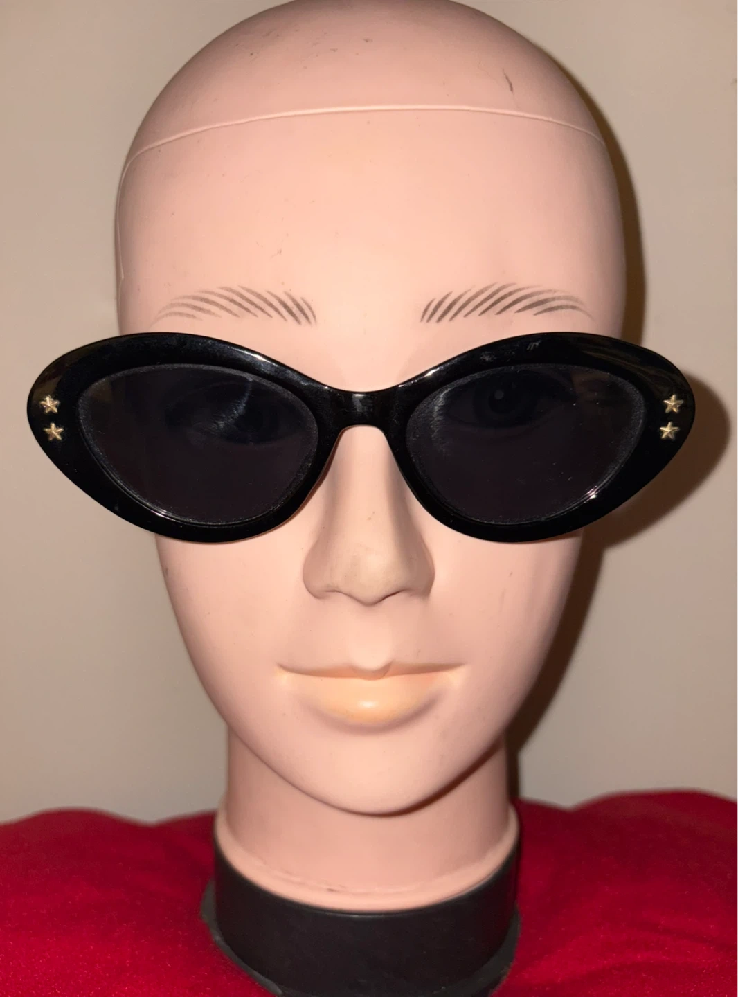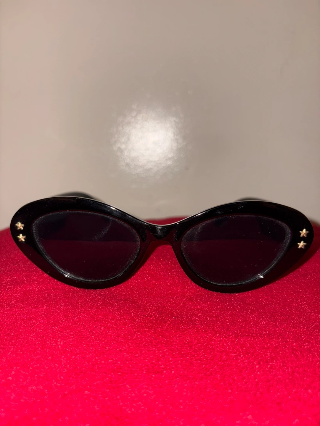 Buy & SellBlack Cat-Eye Sunglasses with Gold StarsBlack Cat-Eye Sunglasses with Gold Stars$5These black cat-eye sunglasses feature gold star accents on the frames. They offer a stylish and bold look. The plastic frame provides durability.ConditionGoodBrandForever 21 WHERE TO MEETCheck LocationView MapSELLERverifiedSariUpper East Side751 review0 chats·1 favorites·17 viewsSEND CHAT TO SELLERHi Sari! I’m interested in your listing.Hi Sari! I’m interested in your listing.Get the Karrot app to chatSign In to chat