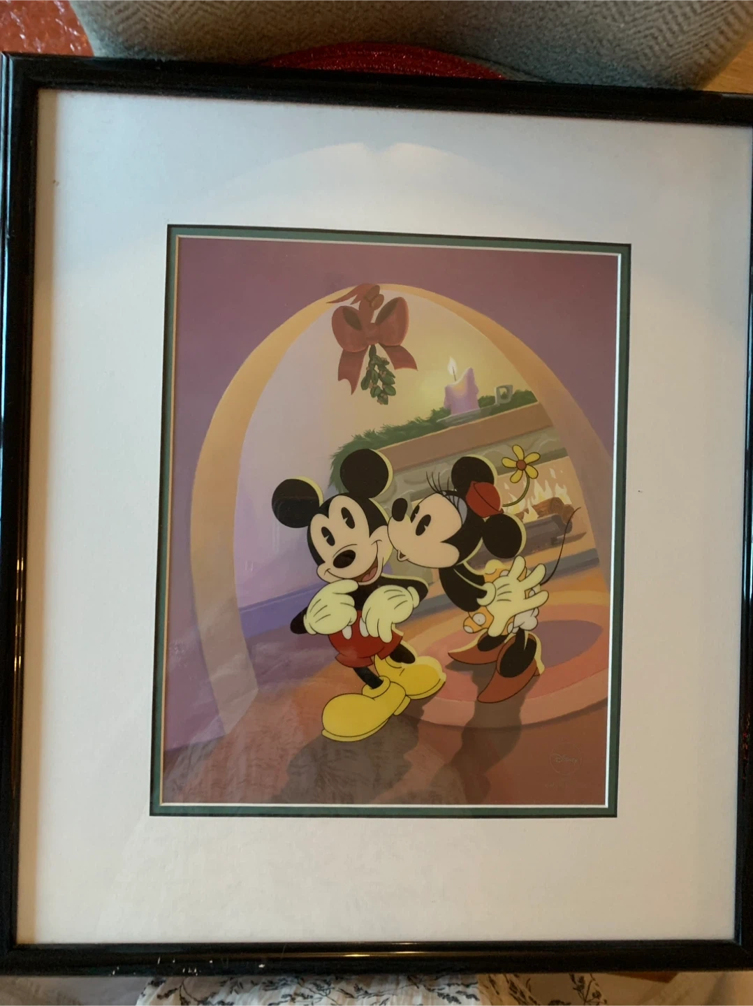 LAST CHANCE ON THE COLLECTOR LIMITED EDITION Selling a framed Disney sericel titled "Under the Mistletoe" featuring Mickey and Minnie Mouse. This is a limited-edition, holiday-themed sericel. The original artwork has been lithographically printed. There are minor scratches on the frame, but the sericel itself is in great condition. Comes with a certificate of authenticity.