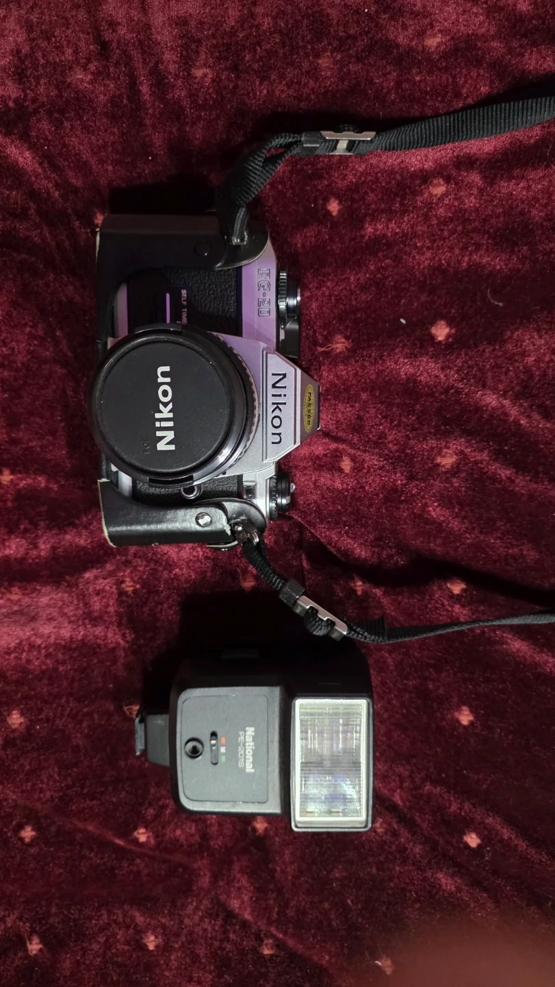 Selling a Nikon FG-20 film camera, complete with a National PE-201S flash unit. This camera is ready to capture some great shots!