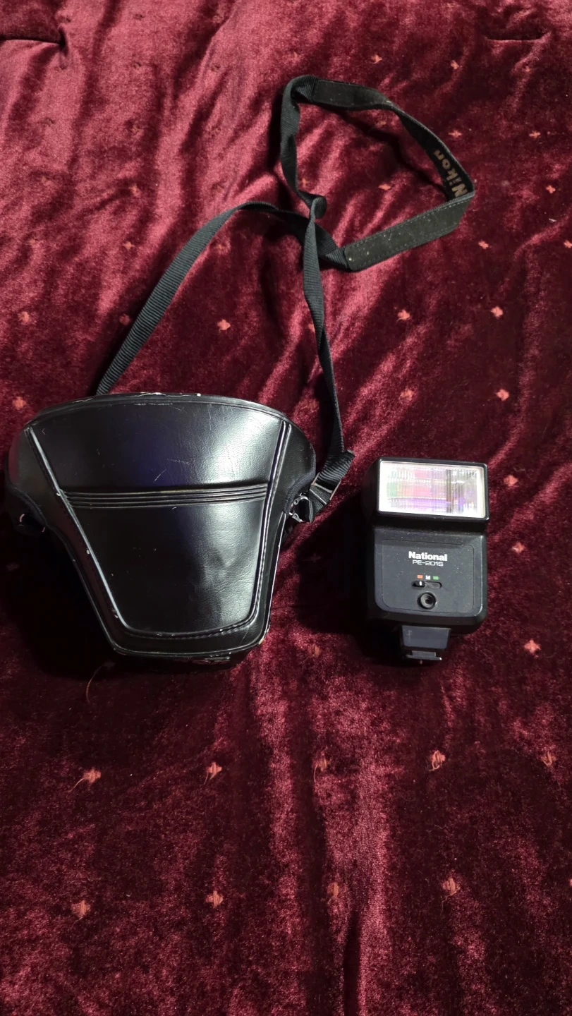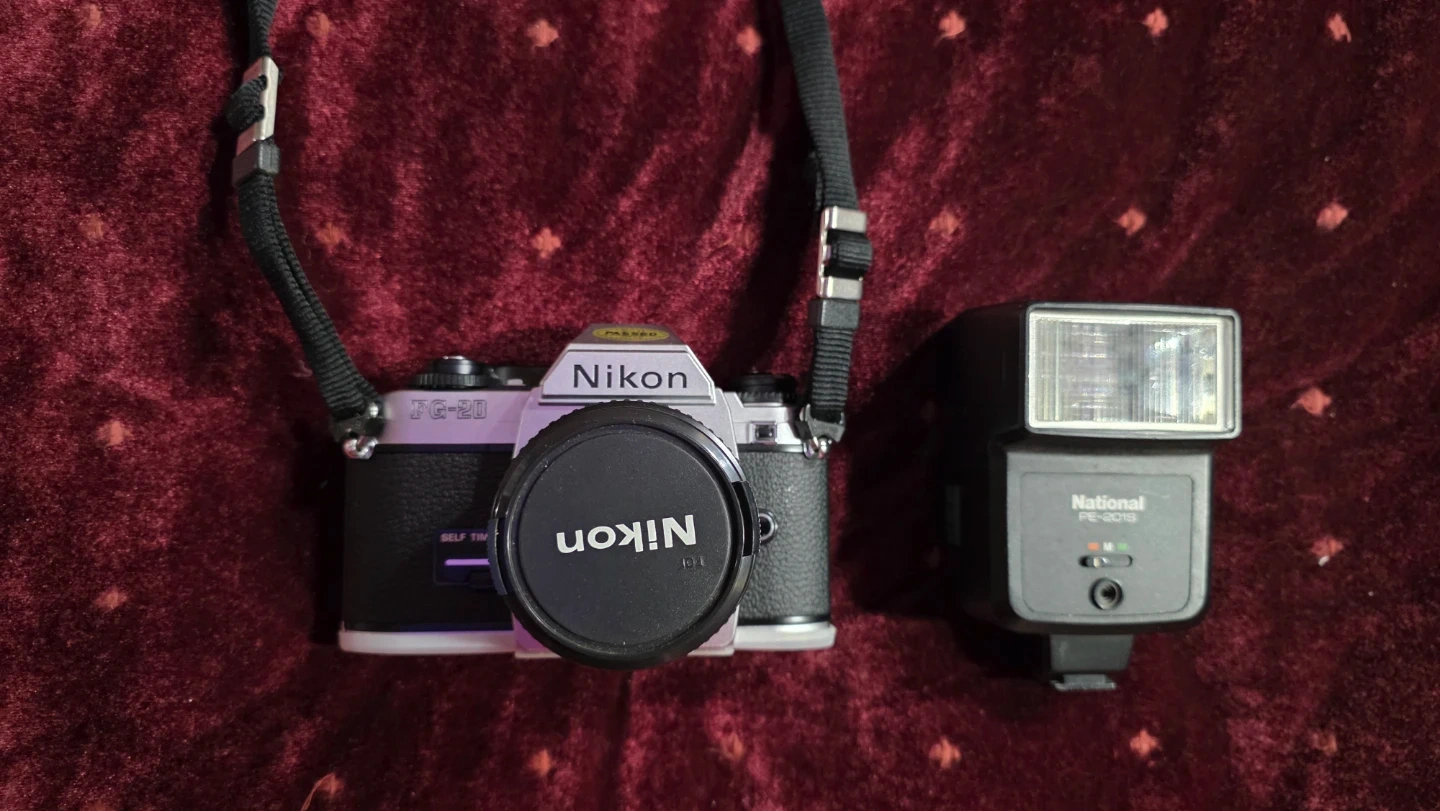 Selling a Nikon FG-20 film camera, complete with a National PE-201S flash unit. This camera is ready to capture some great shots!