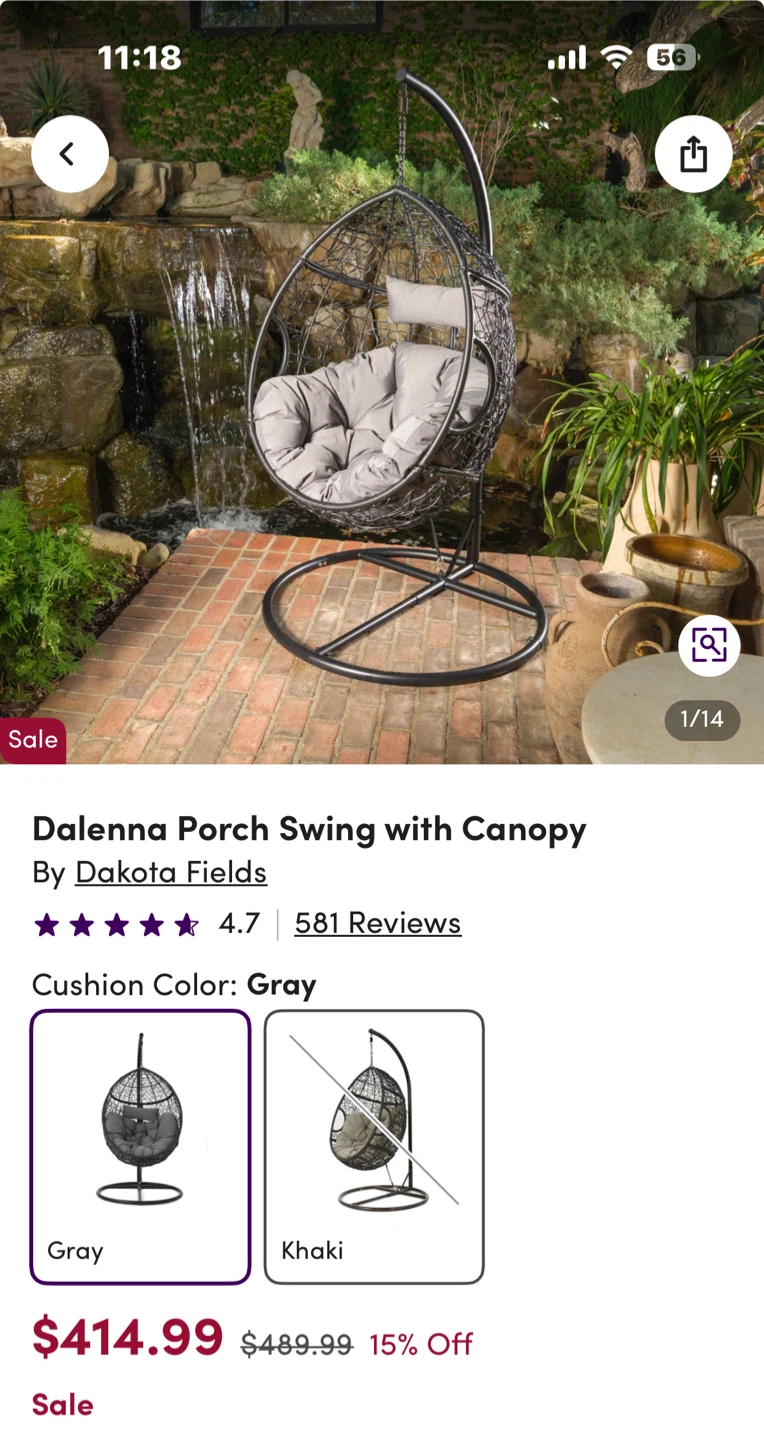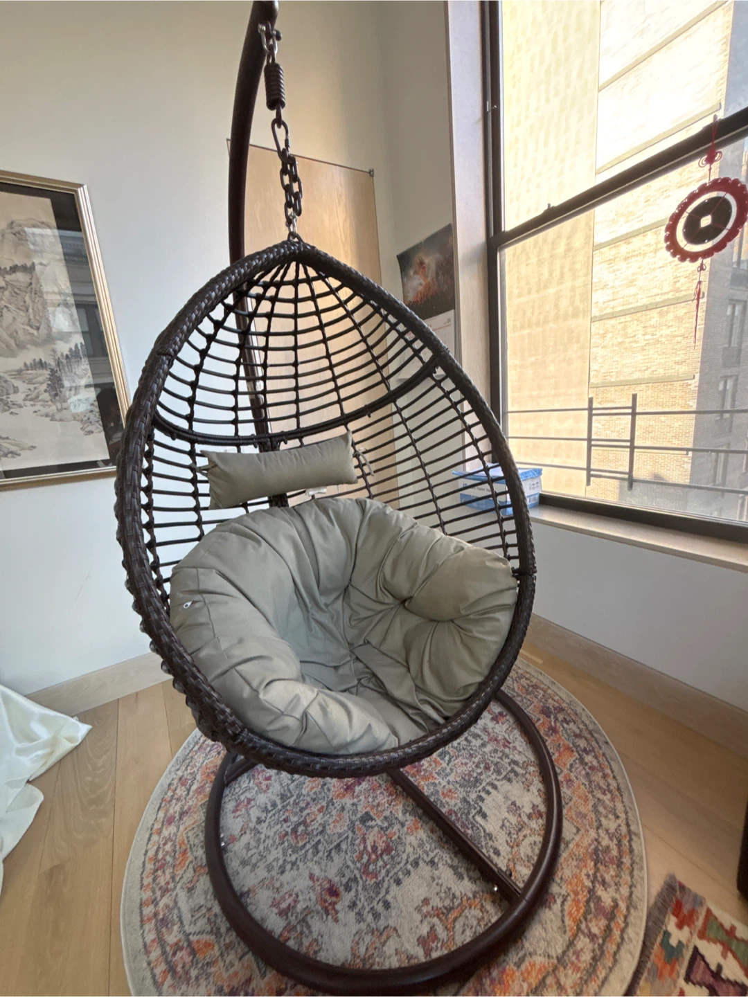 A sturdy egg chair that comes with a comfortable cushion. It's perfect for relaxing indoors or outdoors, garden, porch, kids’s room, library…We bought it at the price of $490.