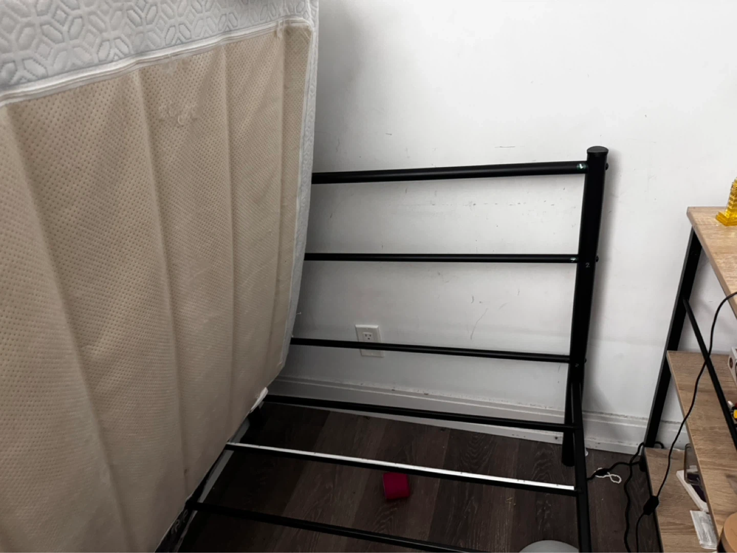 Zinus Black metal twin bed frame ,easy to assemble. Perfect for a small bedroom or guest room! Can throw in the mattress with this for 15 more. Will be disassembled. Would be preferred if pickup ca be after April 20th.