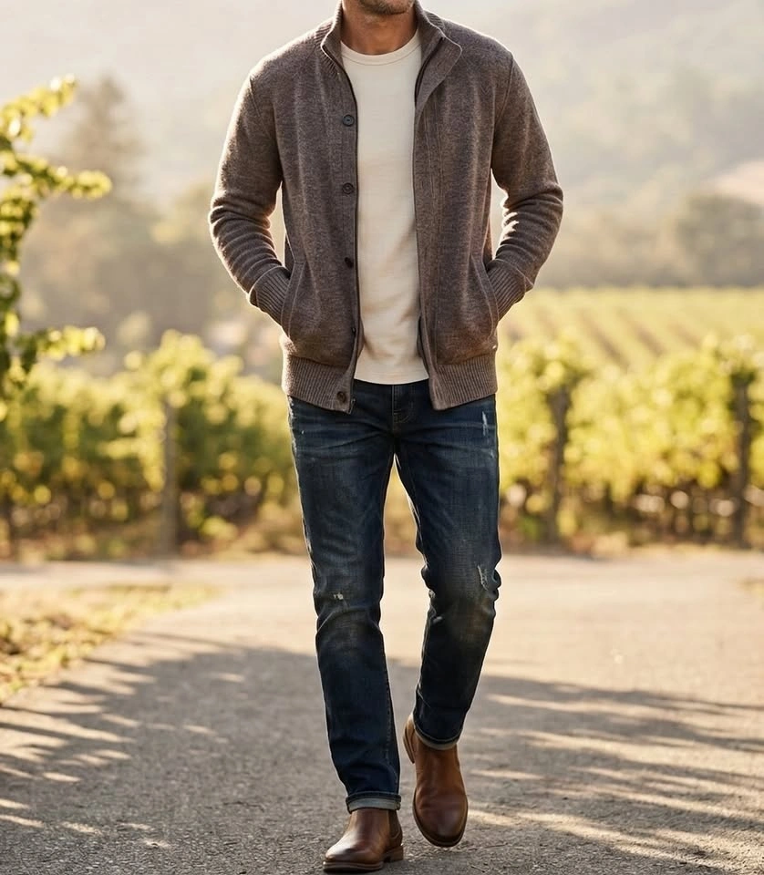 Smart Casual Heathered Knit Cardigan Jacket - Mens Heritage Styl