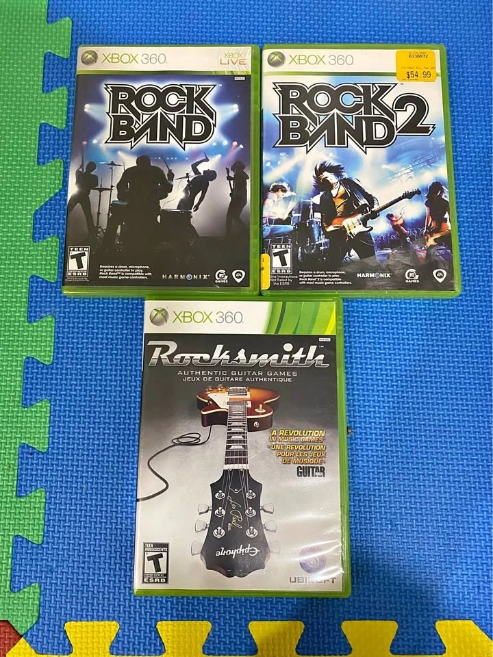 Selling Rock Band, Rock Band 2, and Rocksmith games for Xbox 360. They are in great condition, from a smoke-free and pet-free home. If you purchase all 3, I'll include Army of Two for Xbox 360 for free.