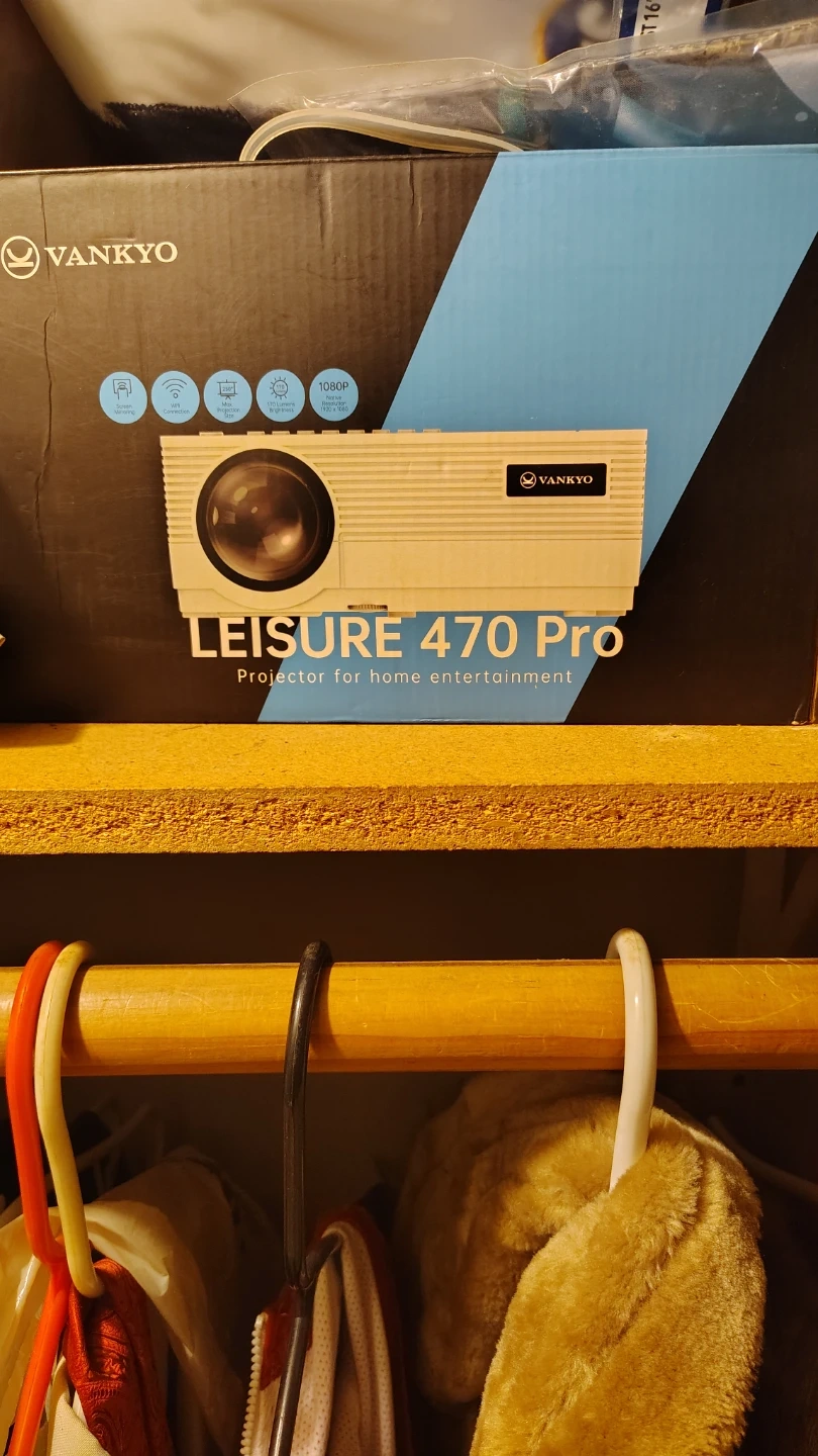 This is the VANKYO LEISURE 470 Pro projector. It supports 1080P resolution at 1920x1080. It's designed for home entertainment. This projector offers screen mirroring and WiFi connectivity.