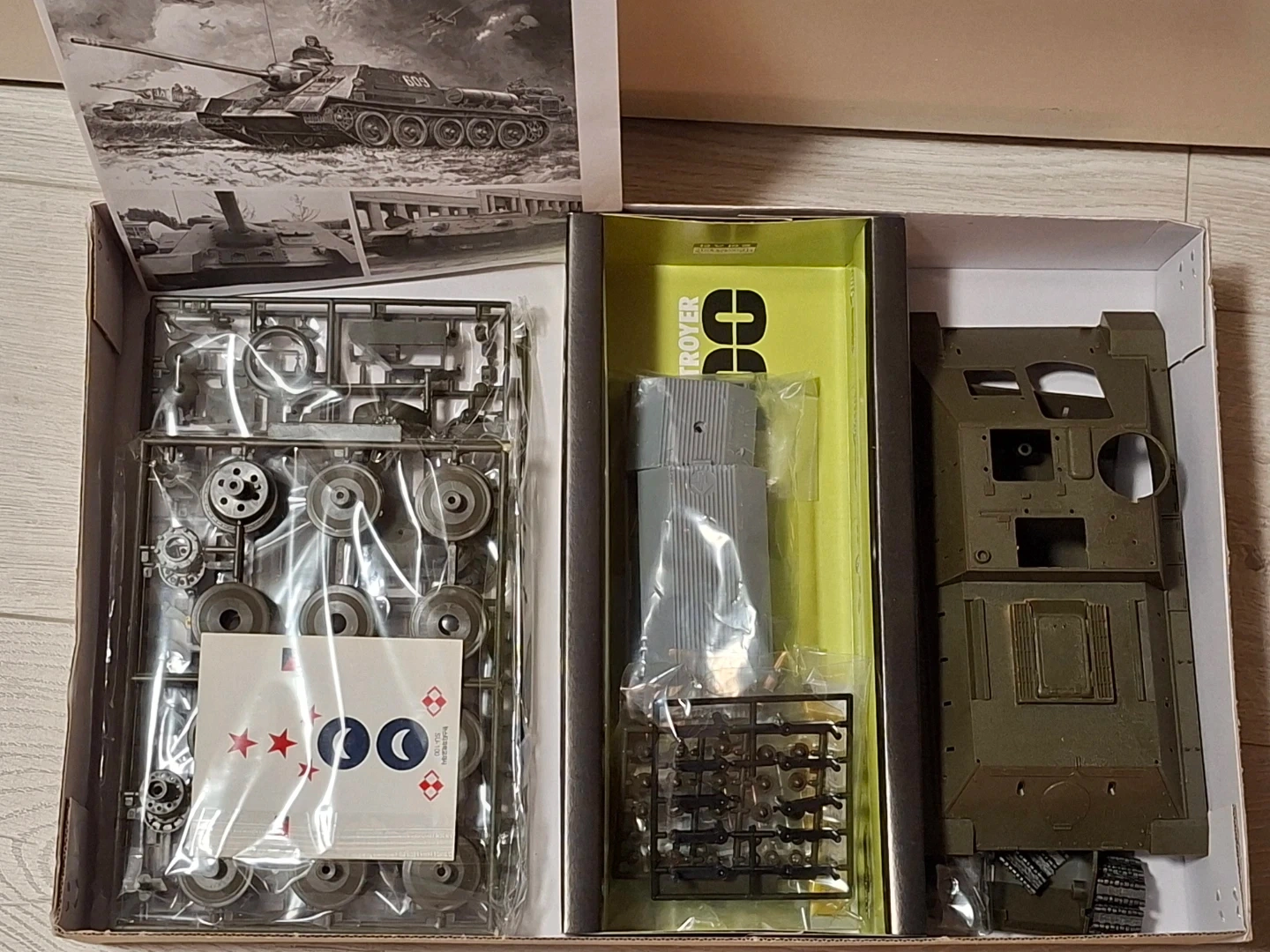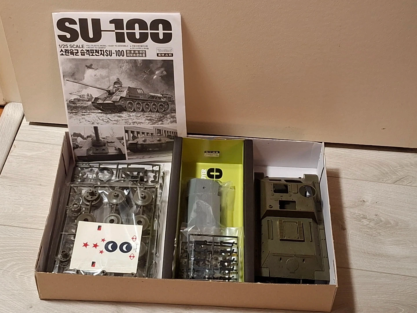 This is the ToyStar SU-100 Russian Tank Destroyer model kit in 1/25 scale. It includes all plastic parts for assembly and decals.