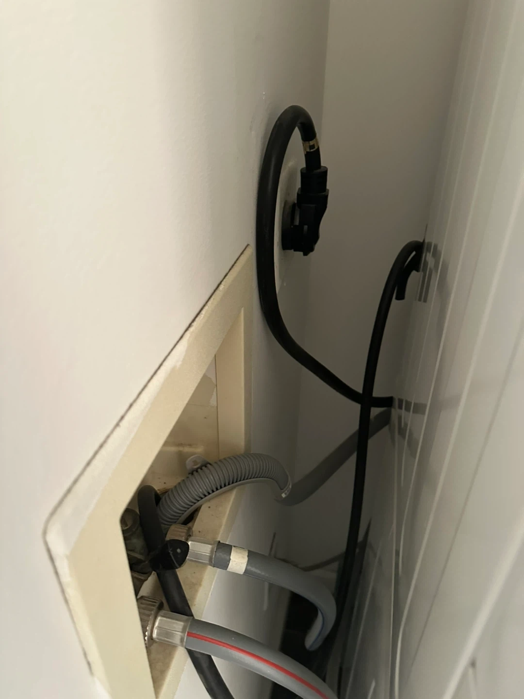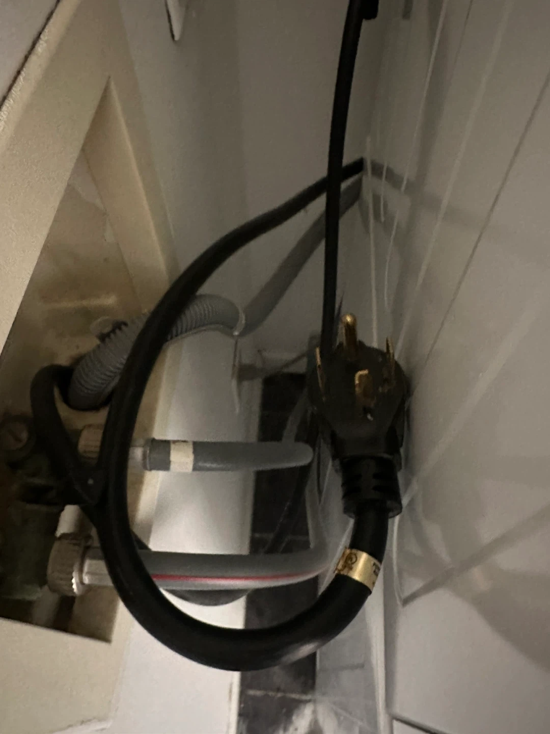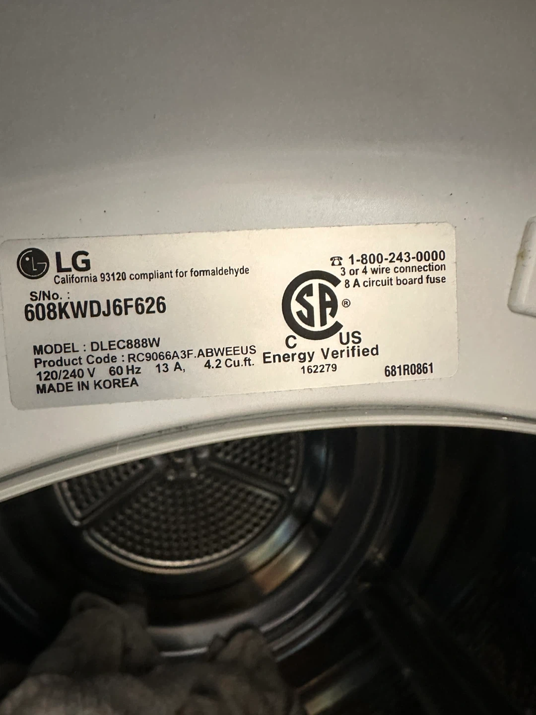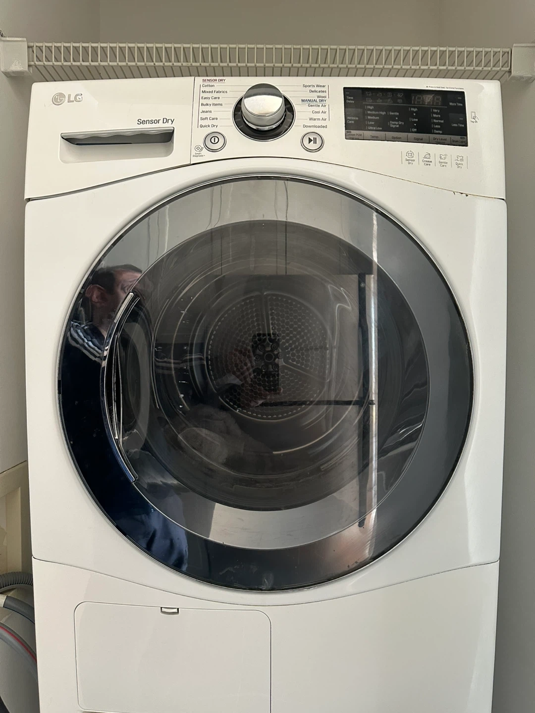 White LG stackable front load washer and dryer set. Features Inverter Direct Drive technology and Sensor Dry. Includes all necessary hoses and power cords.