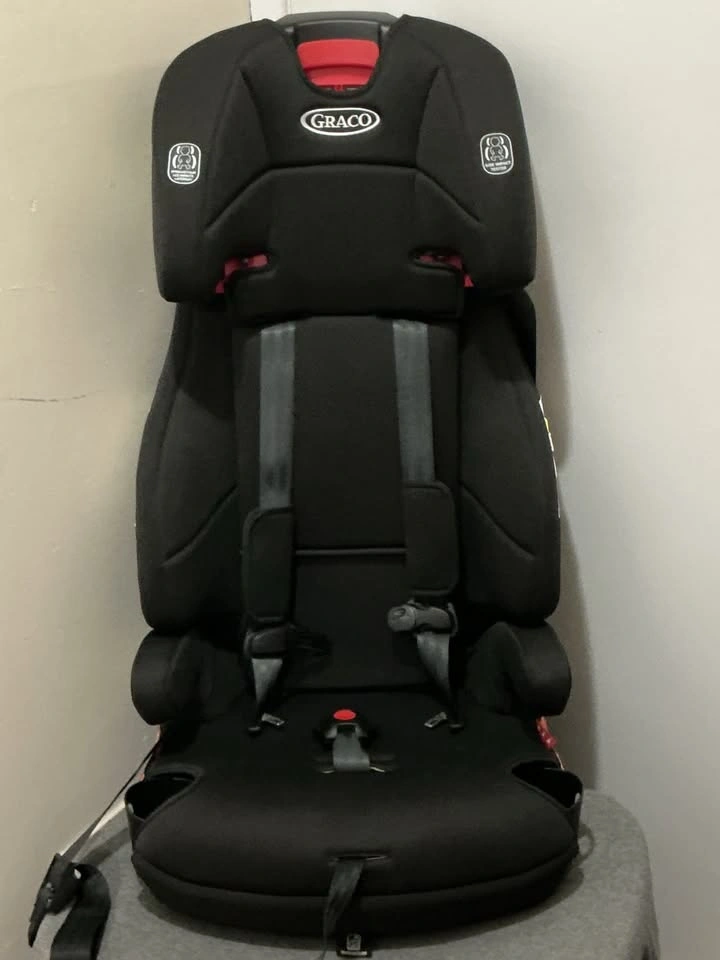 Excellent condition, like new black Graco Tranzitions 3-in-1 harness booster car seat. This car seat transitions from a harnessed booster to a highback booster, and then to a backless booster. Manufactured on March 14, 2022. Bought this for my grandson and he only used it once.