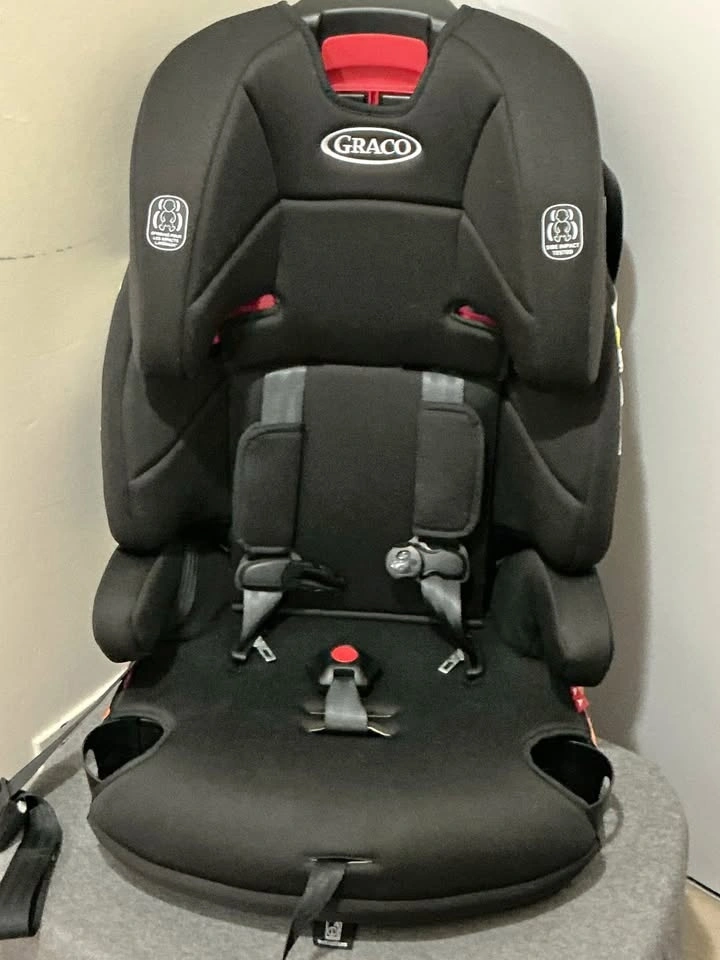 Excellent condition, like new black Graco Tranzitions 3-in-1 harness booster car seat. This car seat transitions from a harnessed booster to a highback booster, and then to a backless booster. Manufactured on March 14, 2022. Bought this for my grandson and he only used it once.