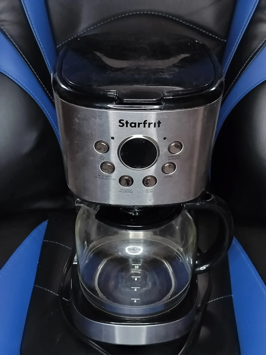 Starfrit 12-cup drip coffee maker in black and silver, perfect for daily use or a budget-friendly upgrade from a basic machine. New versions of this model retail around $45–$55 depending on the store, so this is a solid deal for a full-size programmable brewer.