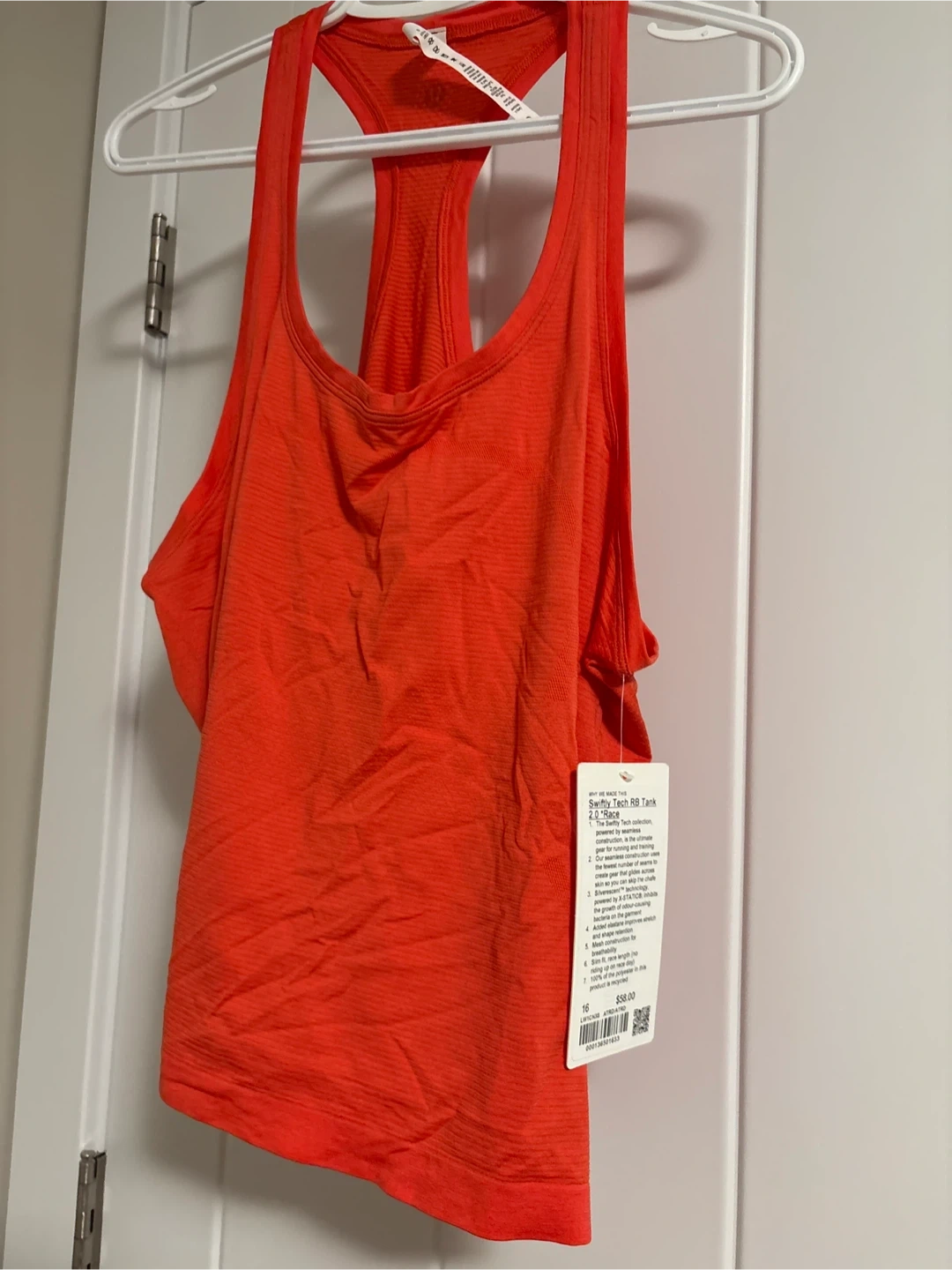 New Lululemon Swiftly Tech RB Tank 2.0 Race - Orange, Size 16