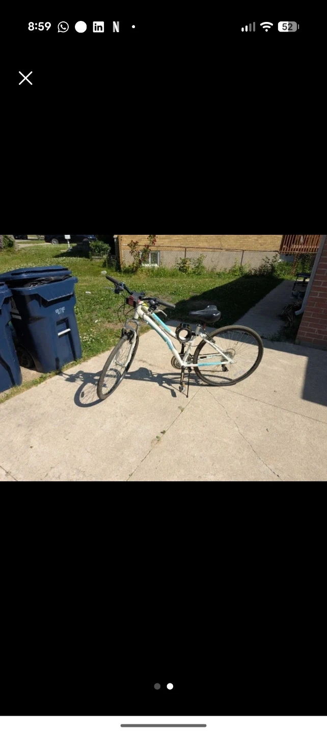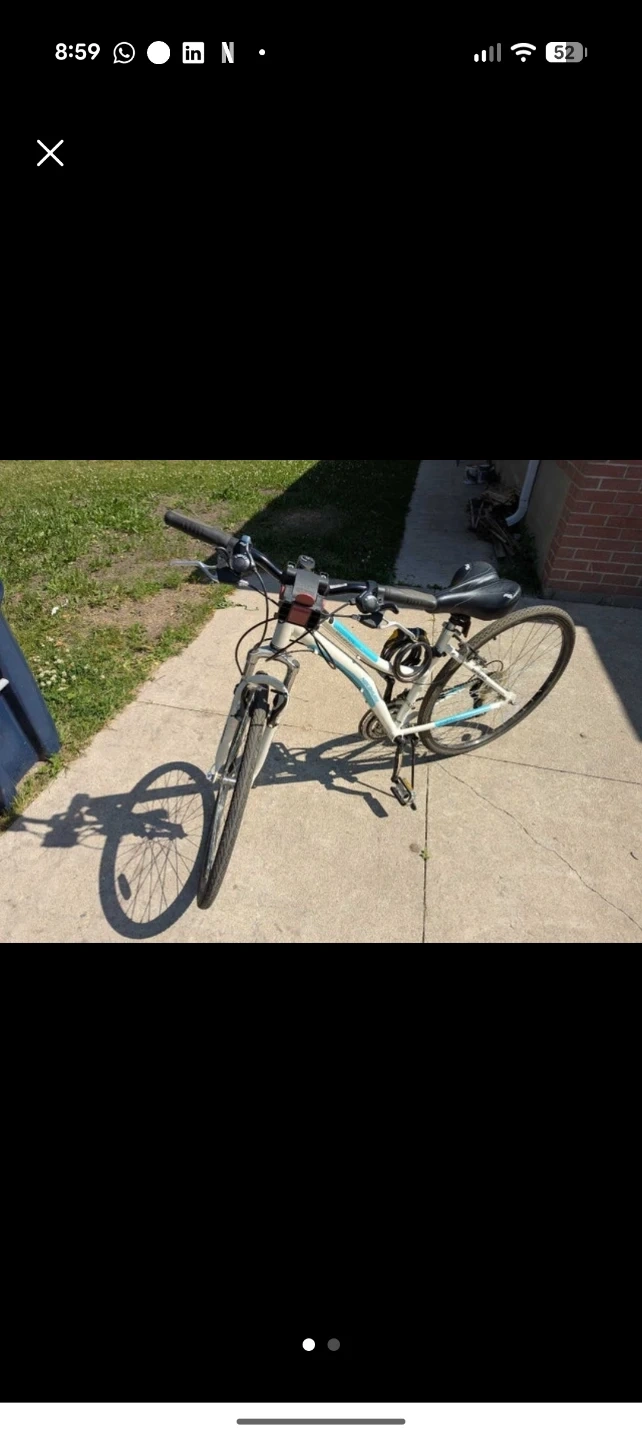 This is a Nakamura Royal Nine.3 women's hybrid bike. It has a 17" frame. This bike is good for commuting or recreational rides.
