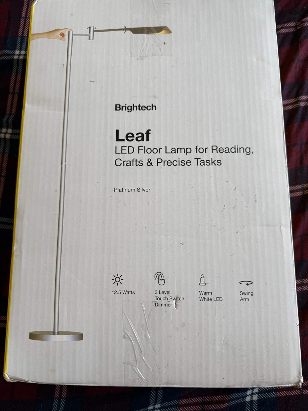 Selling a Brightech Leaf LED floor lamp, perfect for reading, crafts, and precise tasks! It features a 3-level touch switch dimmer and a warm white LED. The lamp also has a swing arm for adjustable lighting. Comes in platinum silver and uses 12.5 watts