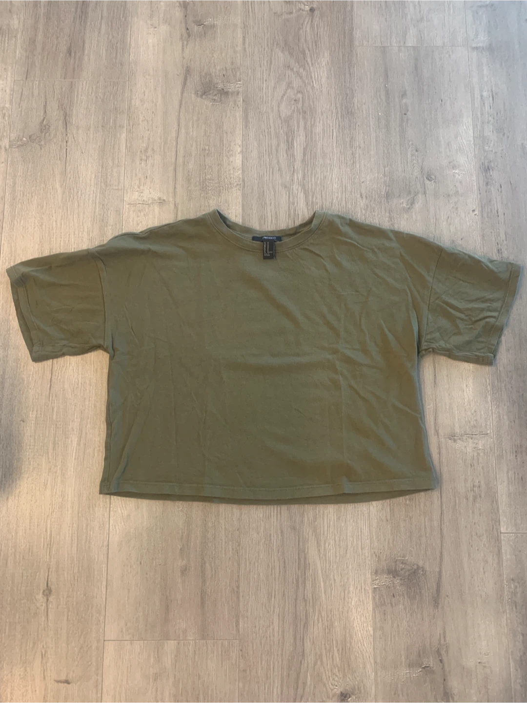 1 / 61 / 6Buy & SellForever 21 Olive Green Cropped T-Shirt - Size MForever 21 Olive Green Cropped T-Shirt - Size M$5A comfy olive green T-shirt from Forever 21 in size medium!WHERE TO MEETCheck LocationView MapSELLERRDNTLions Gate575 reviews0 chatsΒ·0 favoritesΒ·3 viewsSEND CHAT TO SELLERHi RDNT! Iβm interested in your listing.Hi RDNT! Iβm interested in your listing.Get the Karrot app to chatSign In to chat