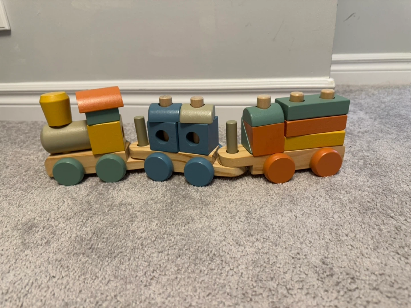 Selling a cute wooden train toy! It's in great condition and perfect for little ones who love trains. The colours are bright and cheerful, and it's made of sturdy wood. Would be a great addition to any playroom!